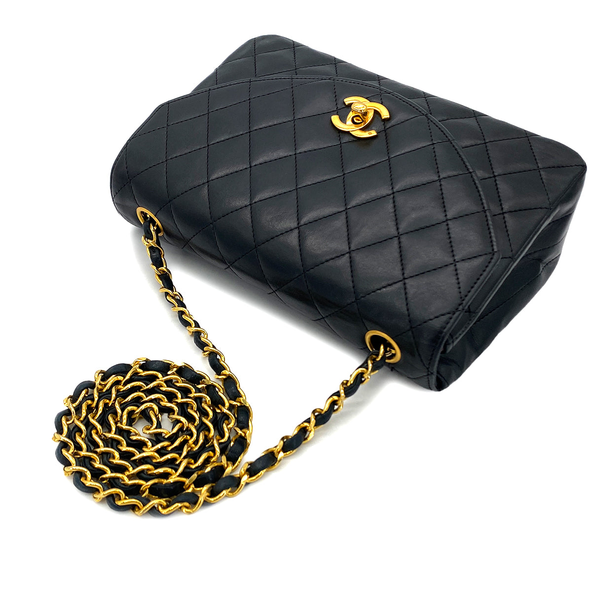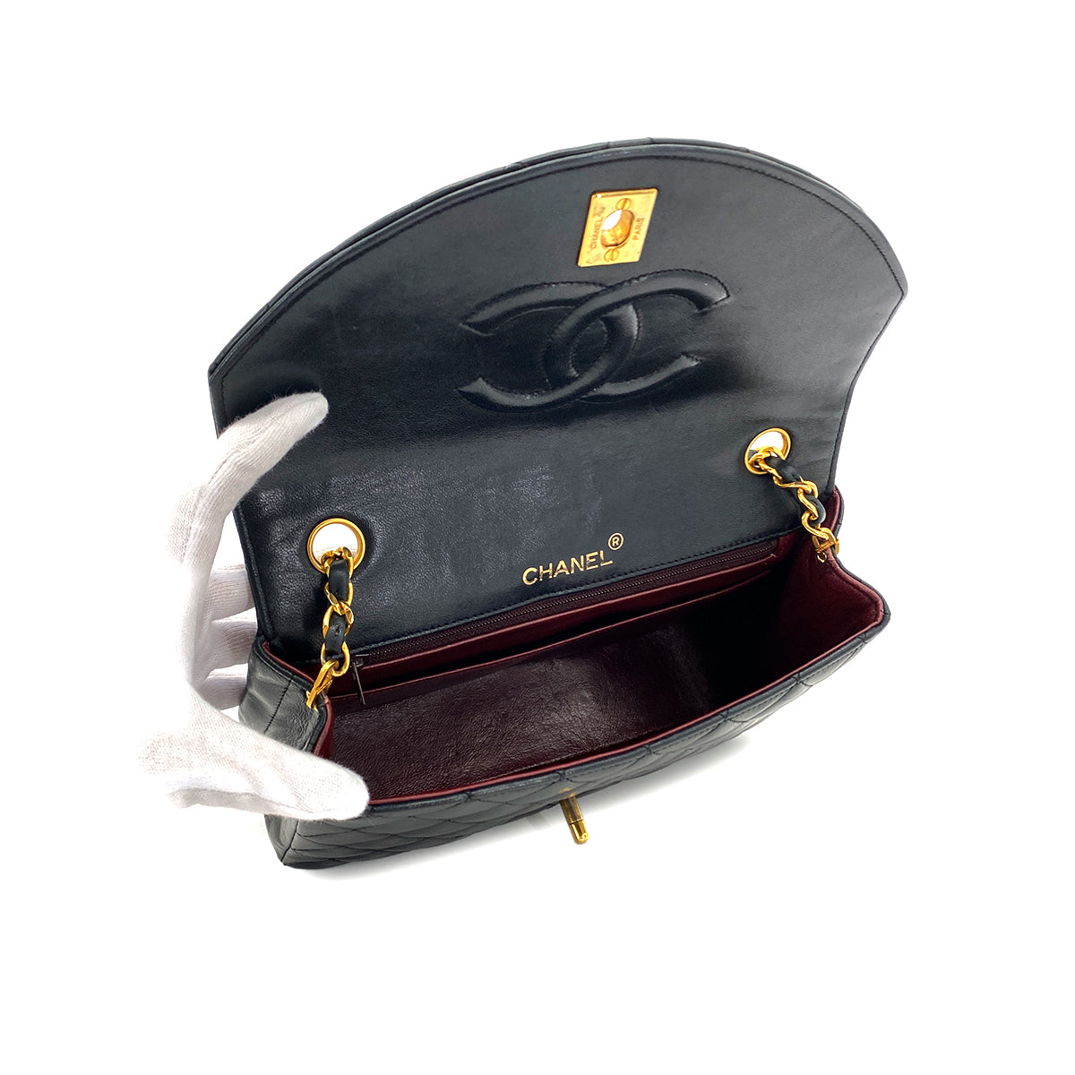 CHANEL VINTAGE MATELASSE HALF MOON CHAIN SHOULDER BAG BLACK LAMB SKIN 90284888
