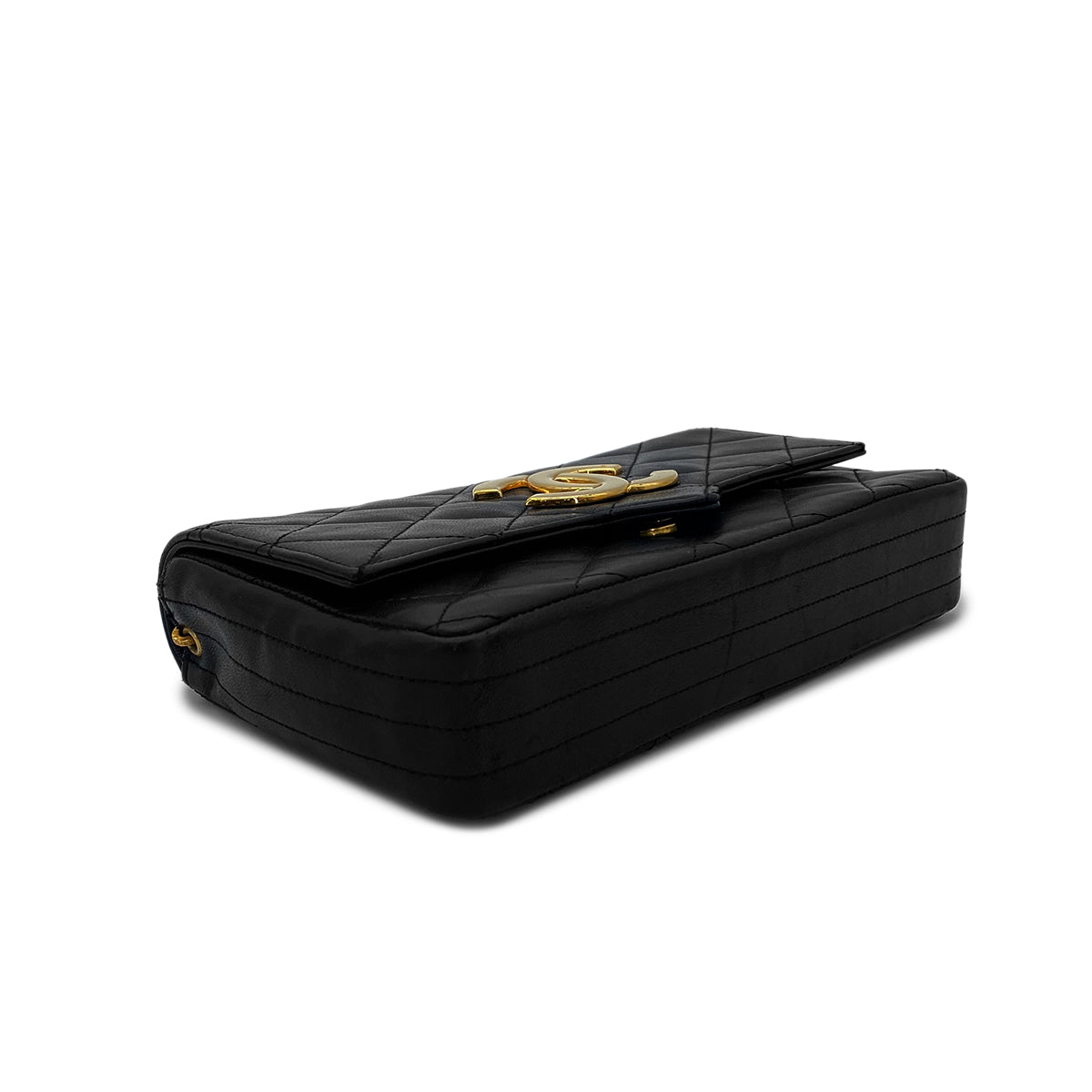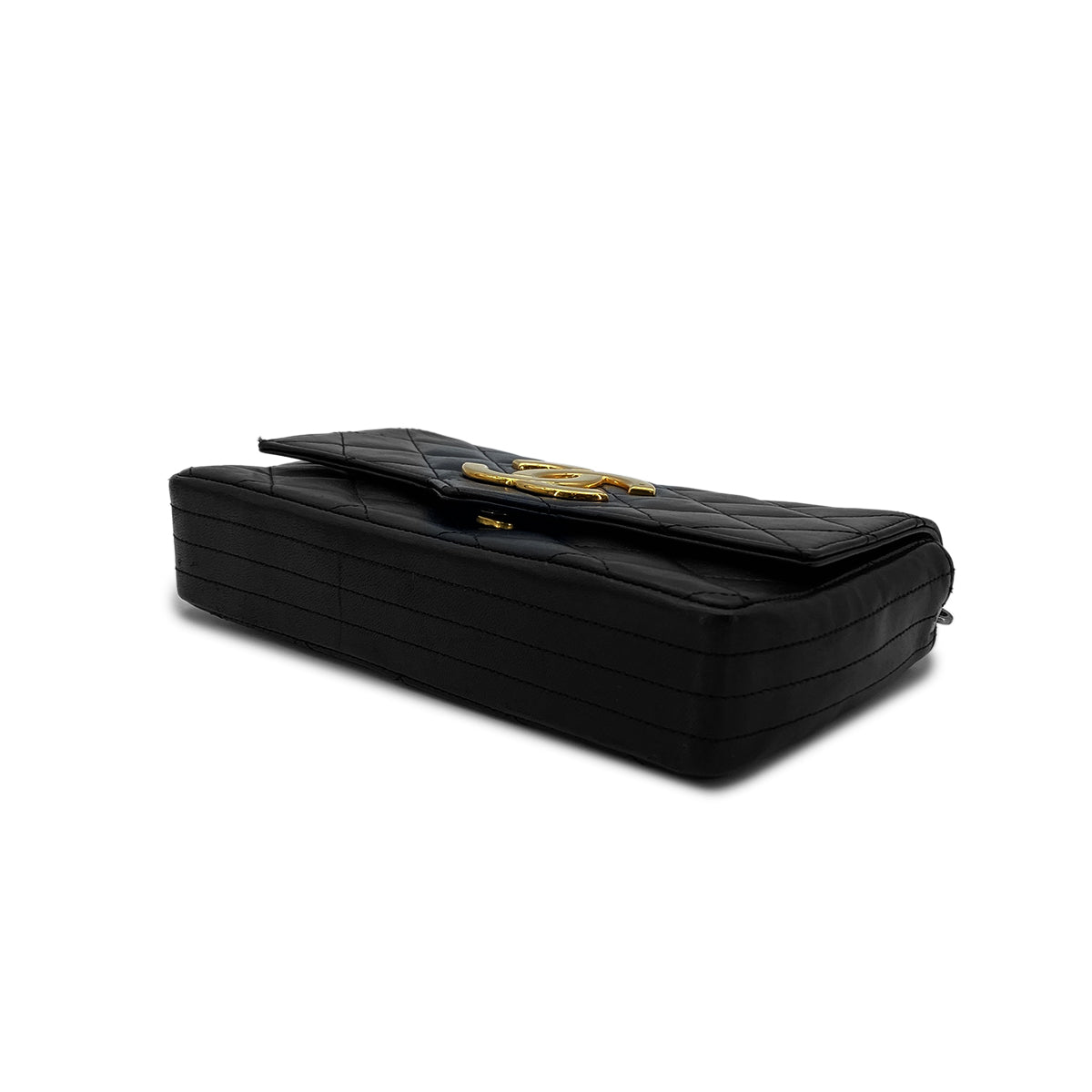 CHANEL VINTAGE MATELASSE BIG COCO CHAIN SHOULDER BAG BLACK LAMB SKIN 90284889