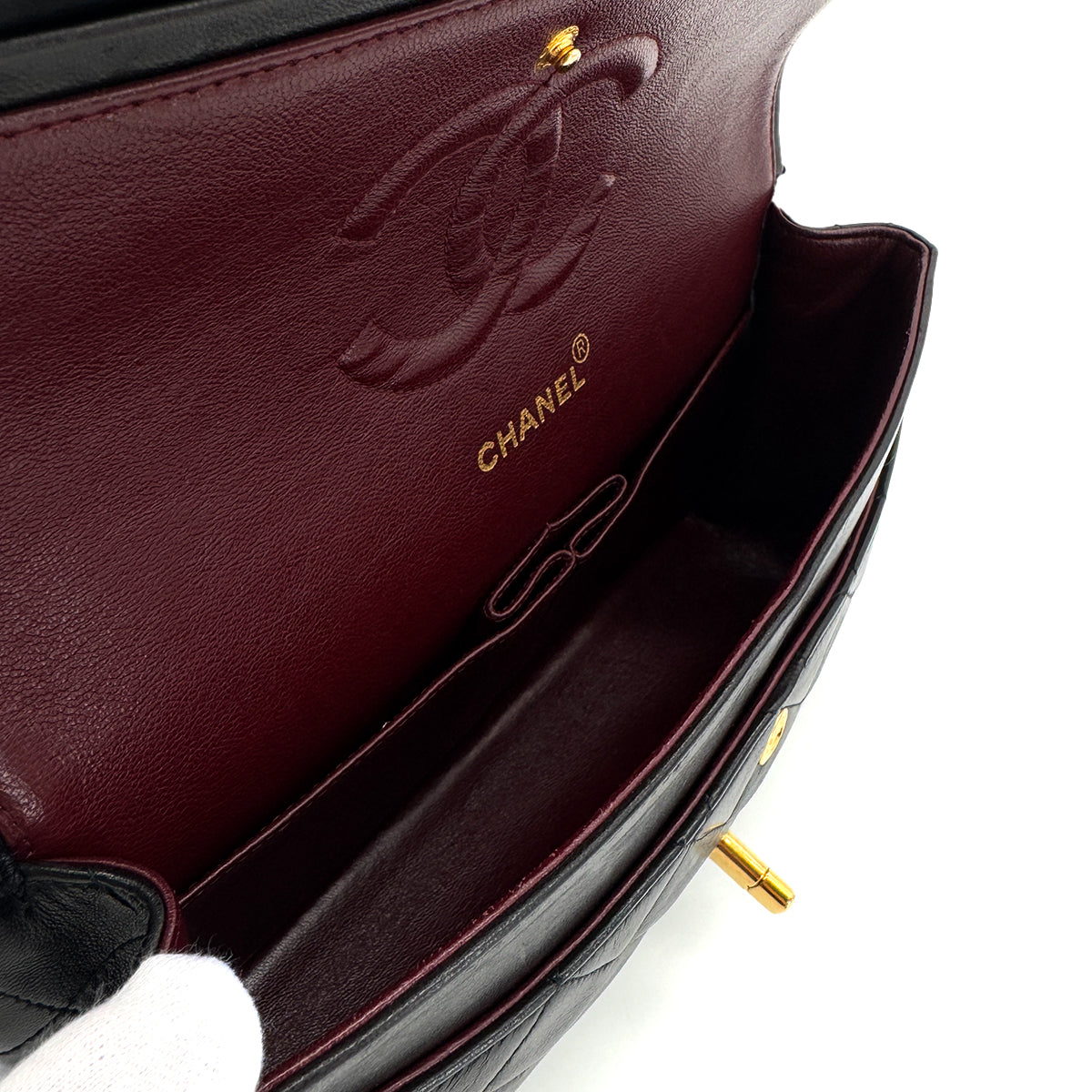 CHANEL VINTAGE CLASSIC FLAP MEDIUM CHAIN SHOULDER BAG BLACK LAMB SKIN 90285108