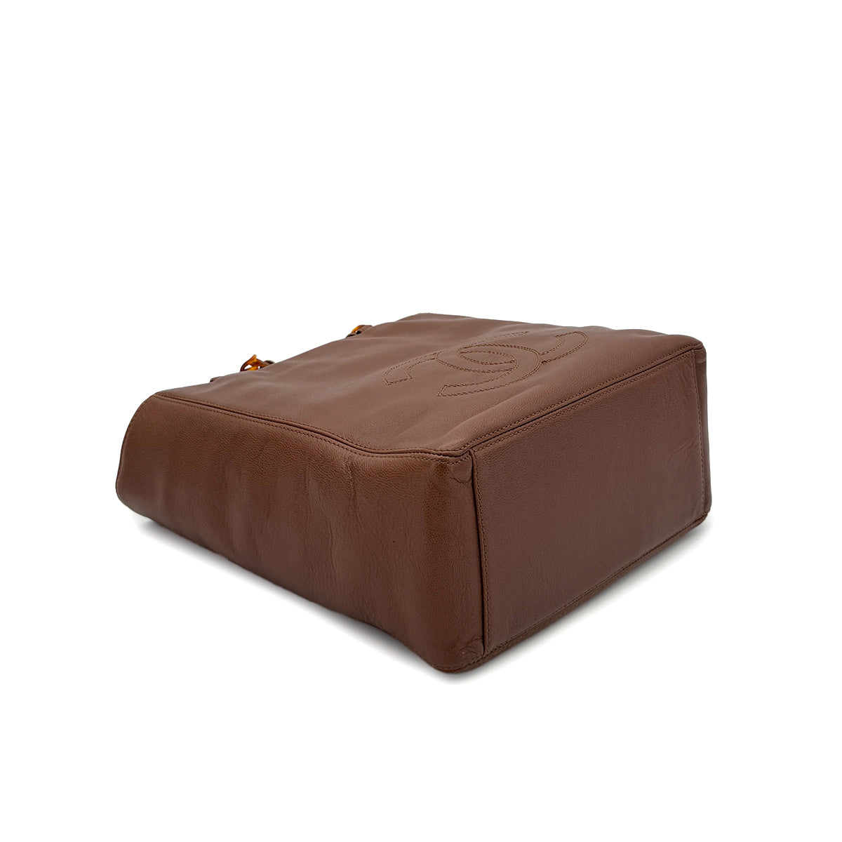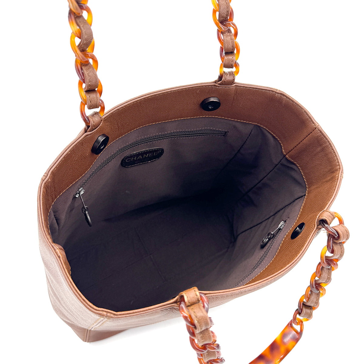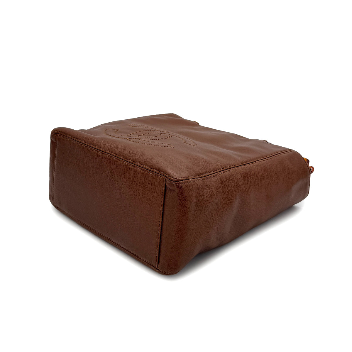 CHANEL VINTAGE BIG COCO TORTOISESHELL HANDLE CHAIN TOTE BAG BROWN LAMB SKIN 90285109