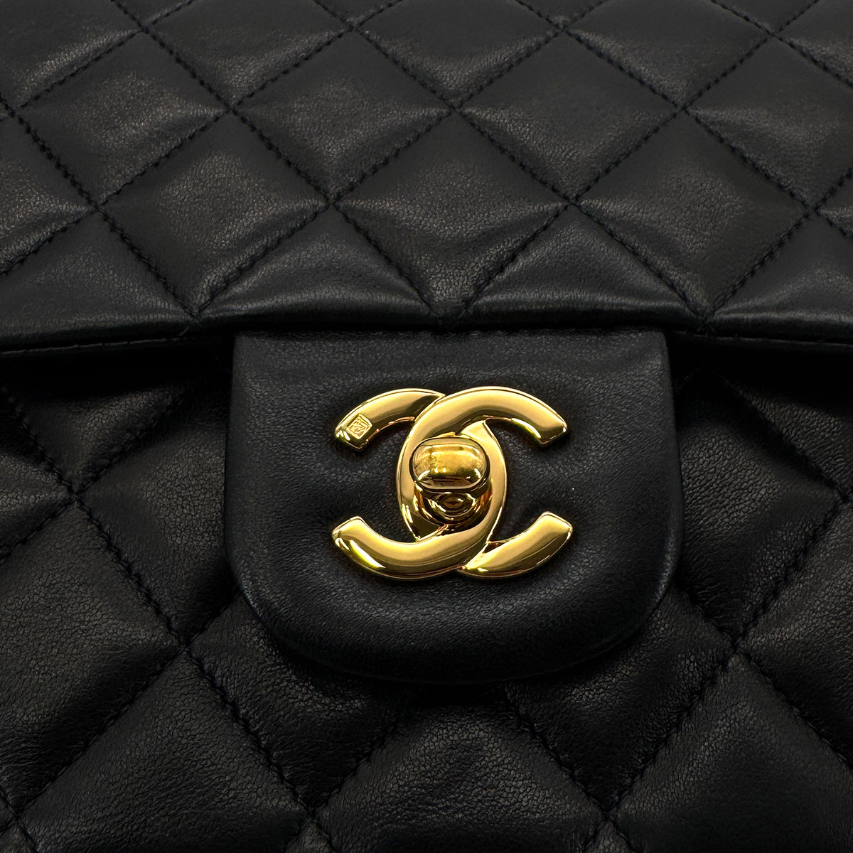 CHANEL VINTAGE CLASSIC FLAP MEDIUM CHAIN SHOULDER BAG BLACK LAMB SKIN 90285375