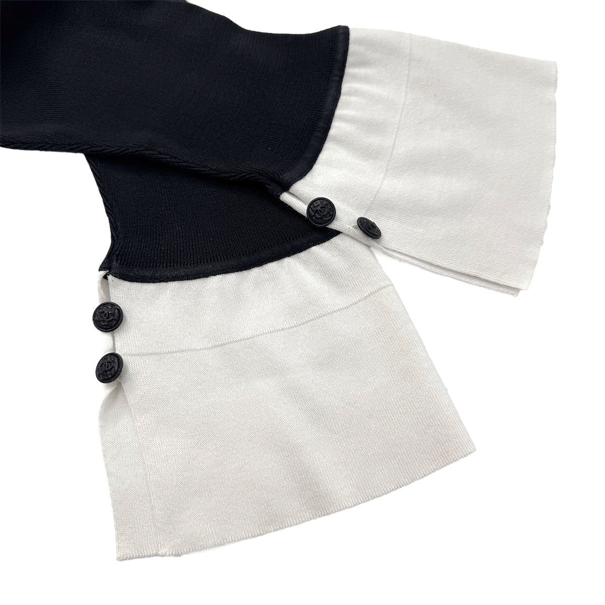 CHANEL COCOMARK BUTTON BICOLOR KNIT TOPS BLACK WHITE COTTON 48 07P RTW 90285955