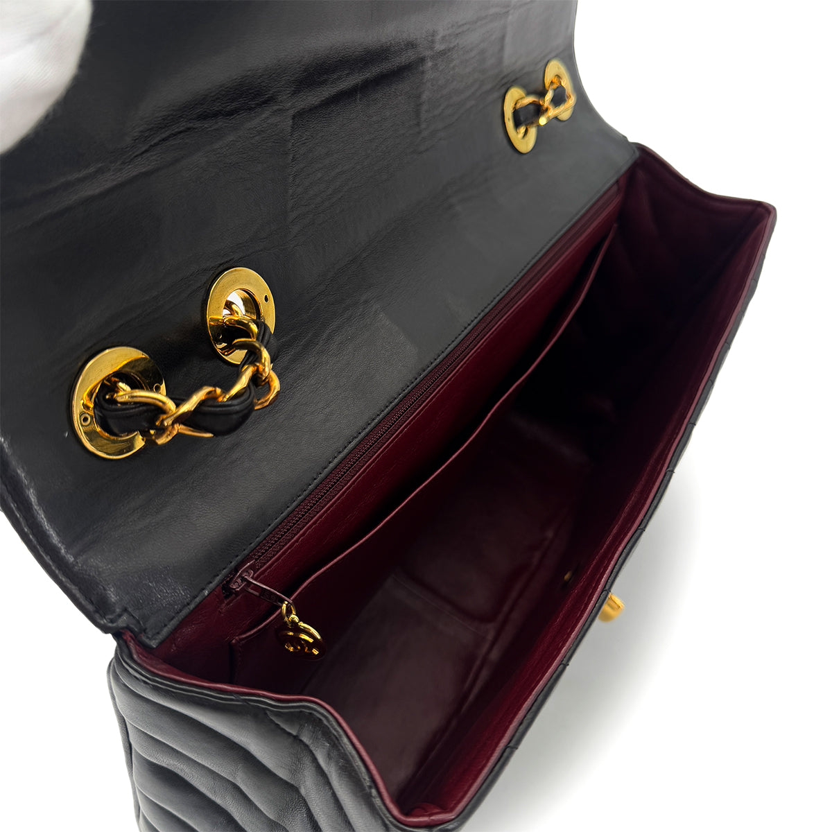 CHANEL VINTAGE CHEVRON CHAIN SHOULDER BAG BLACK LAMB SKIN 90286581