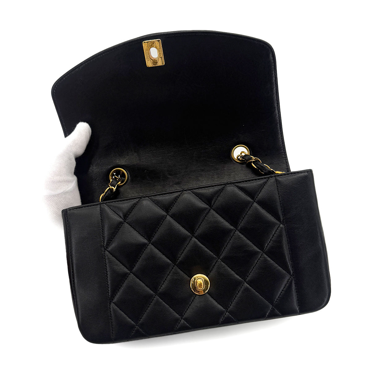 CHANEL VINTAGE DIANA SMALL CHAIN SHOULDER BAG BLACK LAMB SKIN 90286873
