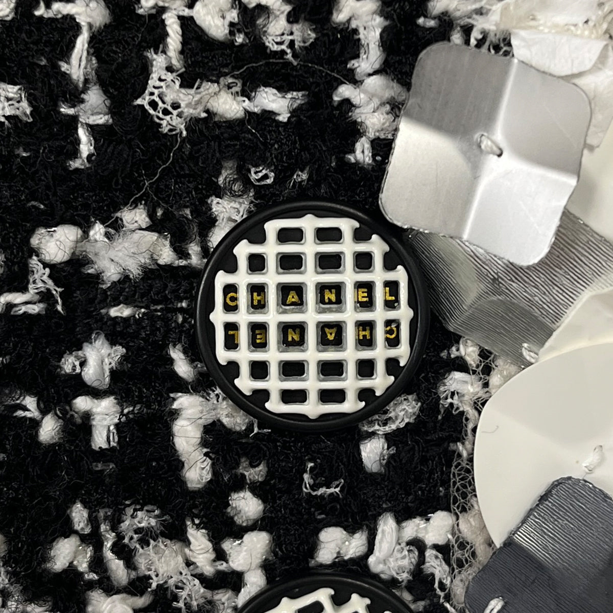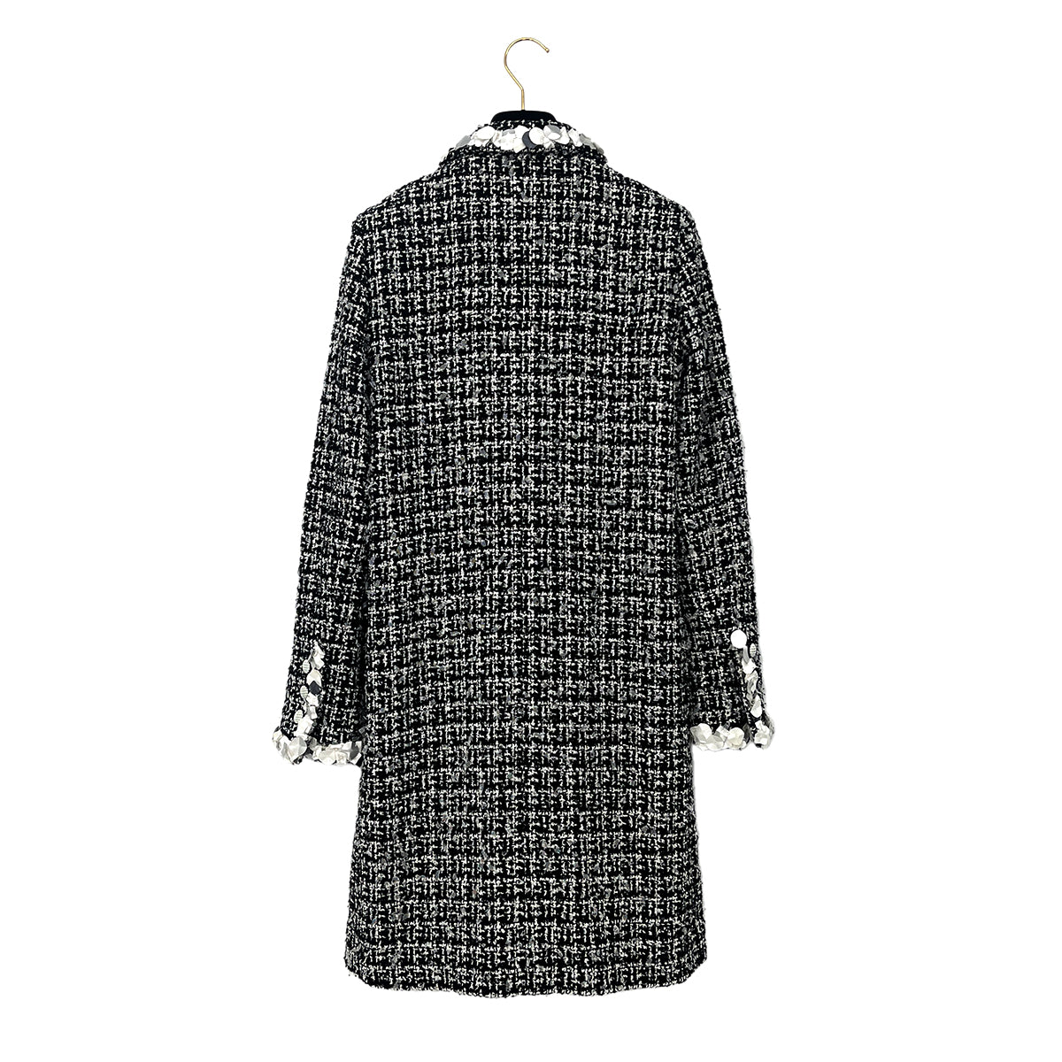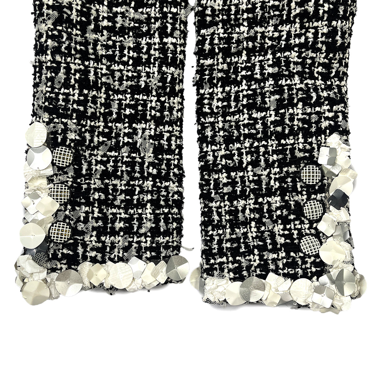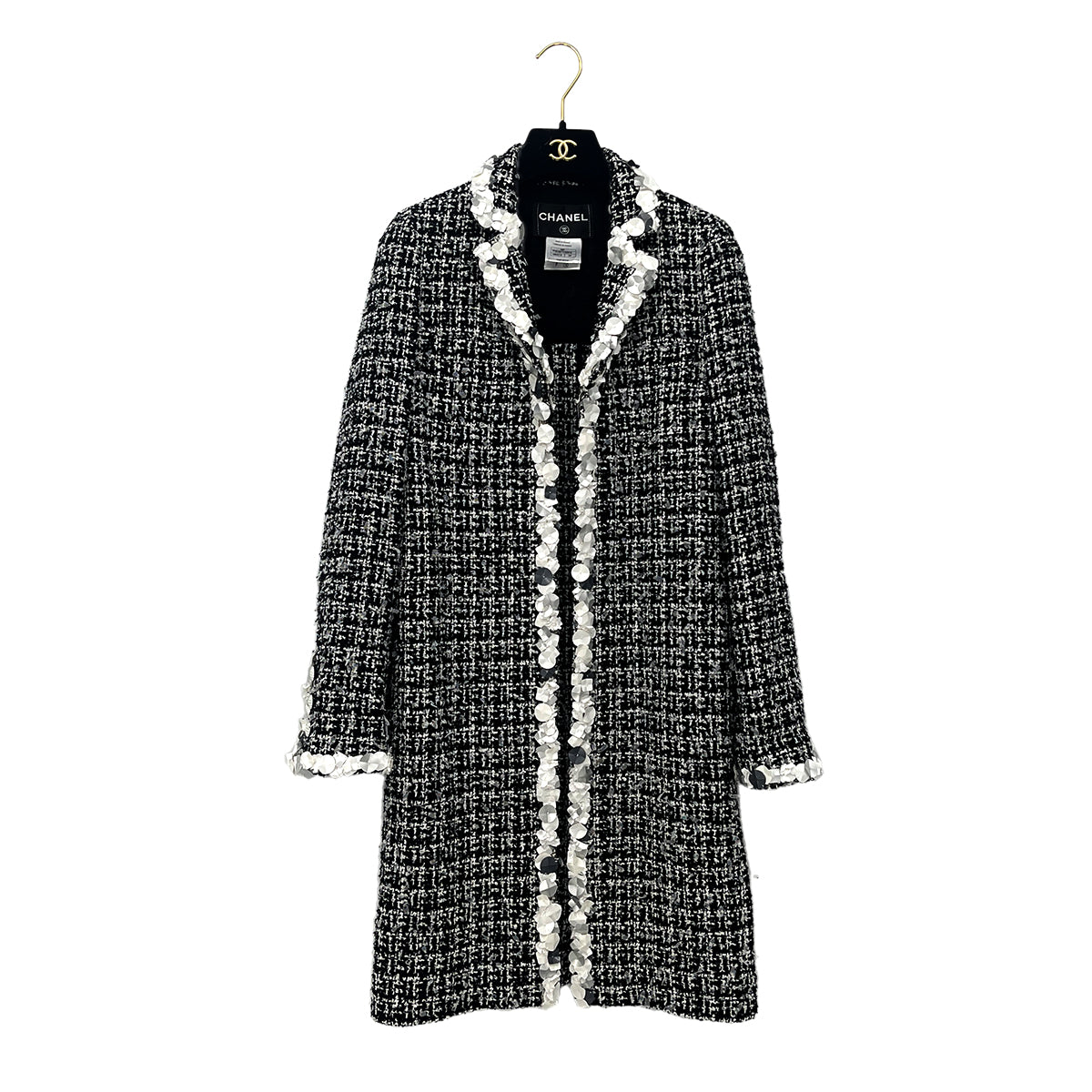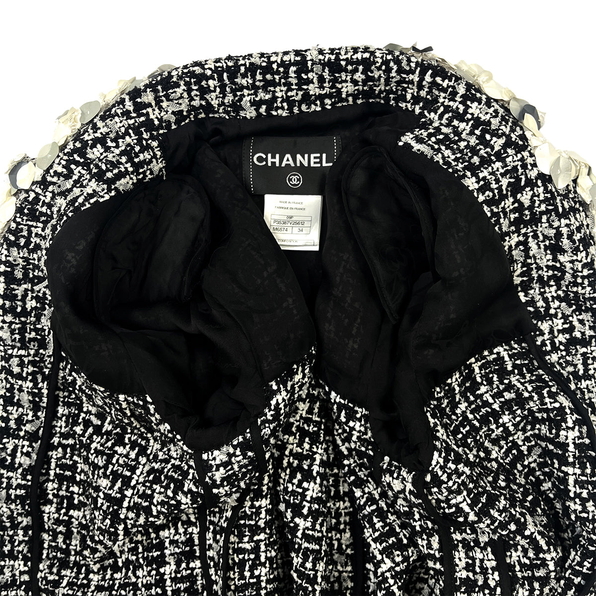 CHANEL PRE-OWNED 2009 OPEN FRONT TWEED COAT BLACK WHITE NYLON WOOL 34 09P RTW 90286881