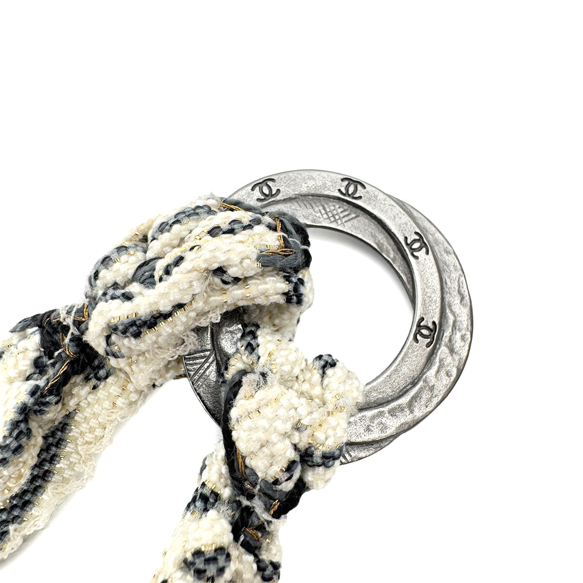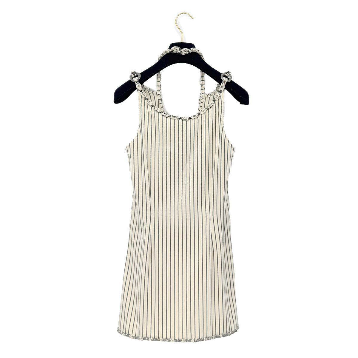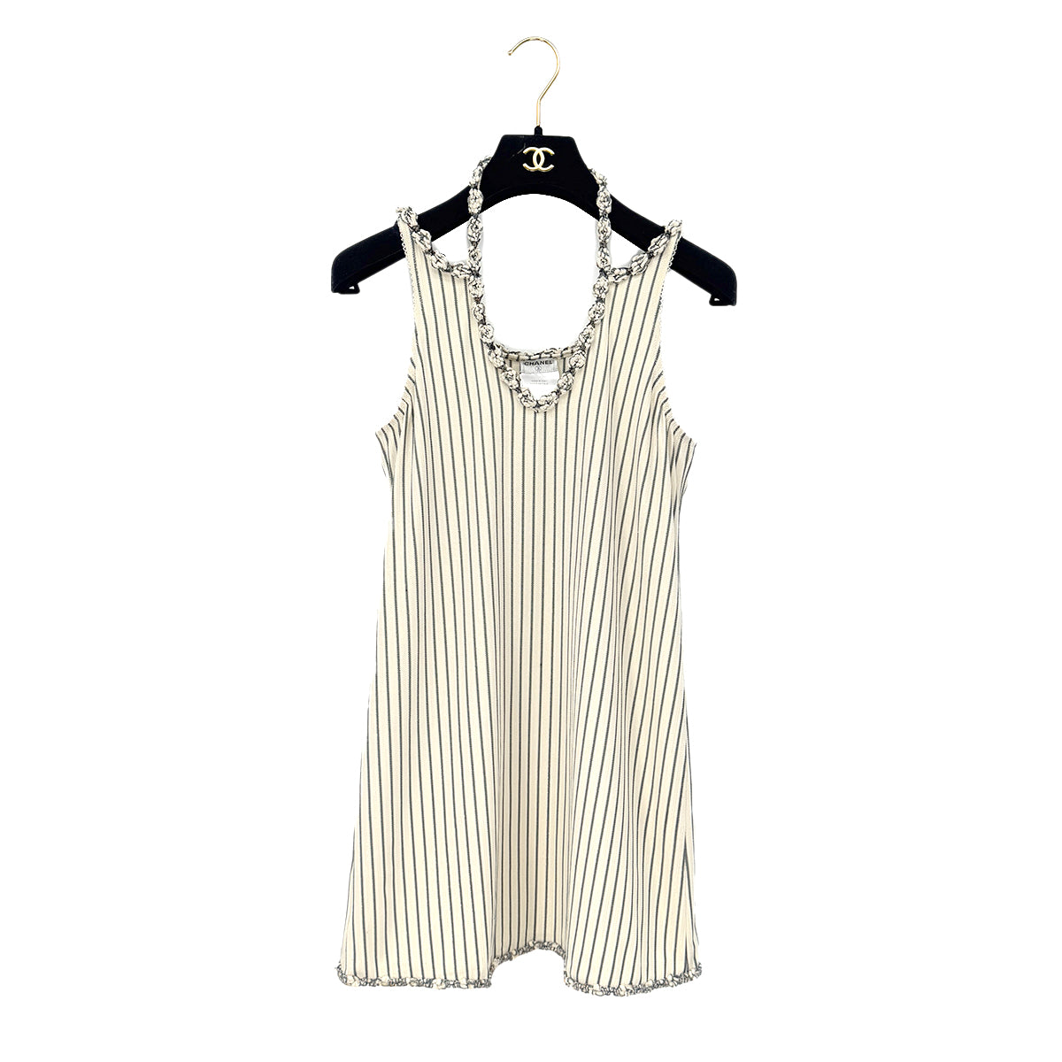CHANEL SLEEVELESS STRIPE TOPS ECRU GRAY GOLD POLYESTER 36 08P RTW 90286884