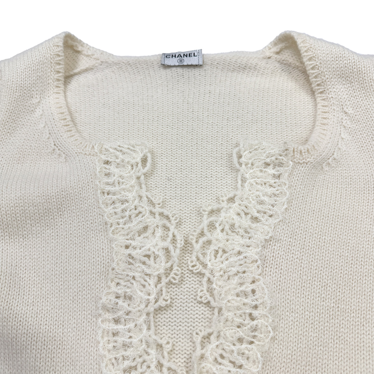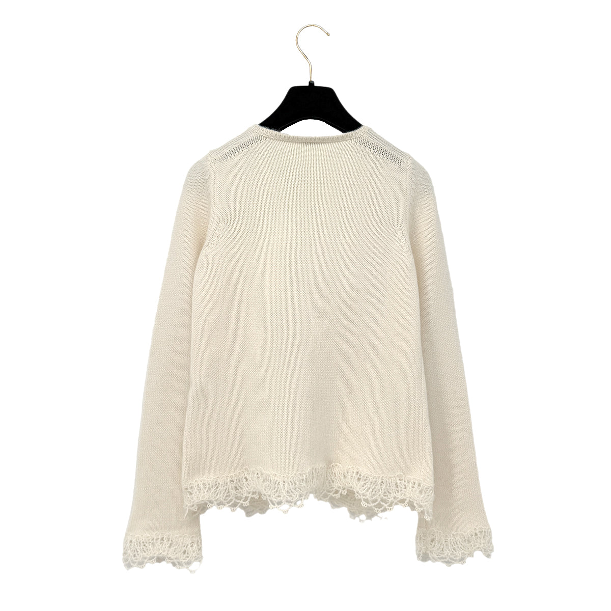 CHANEL KNITTING LACE CARDIGAN SKIRT SET IVORY CASHMERE 36 06C RTW 90286910