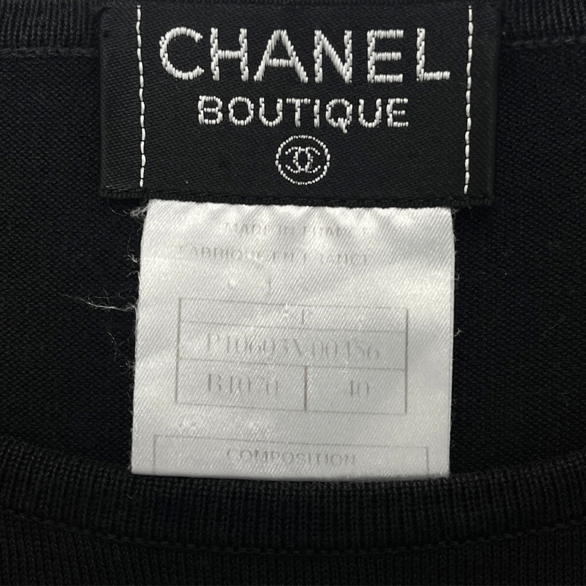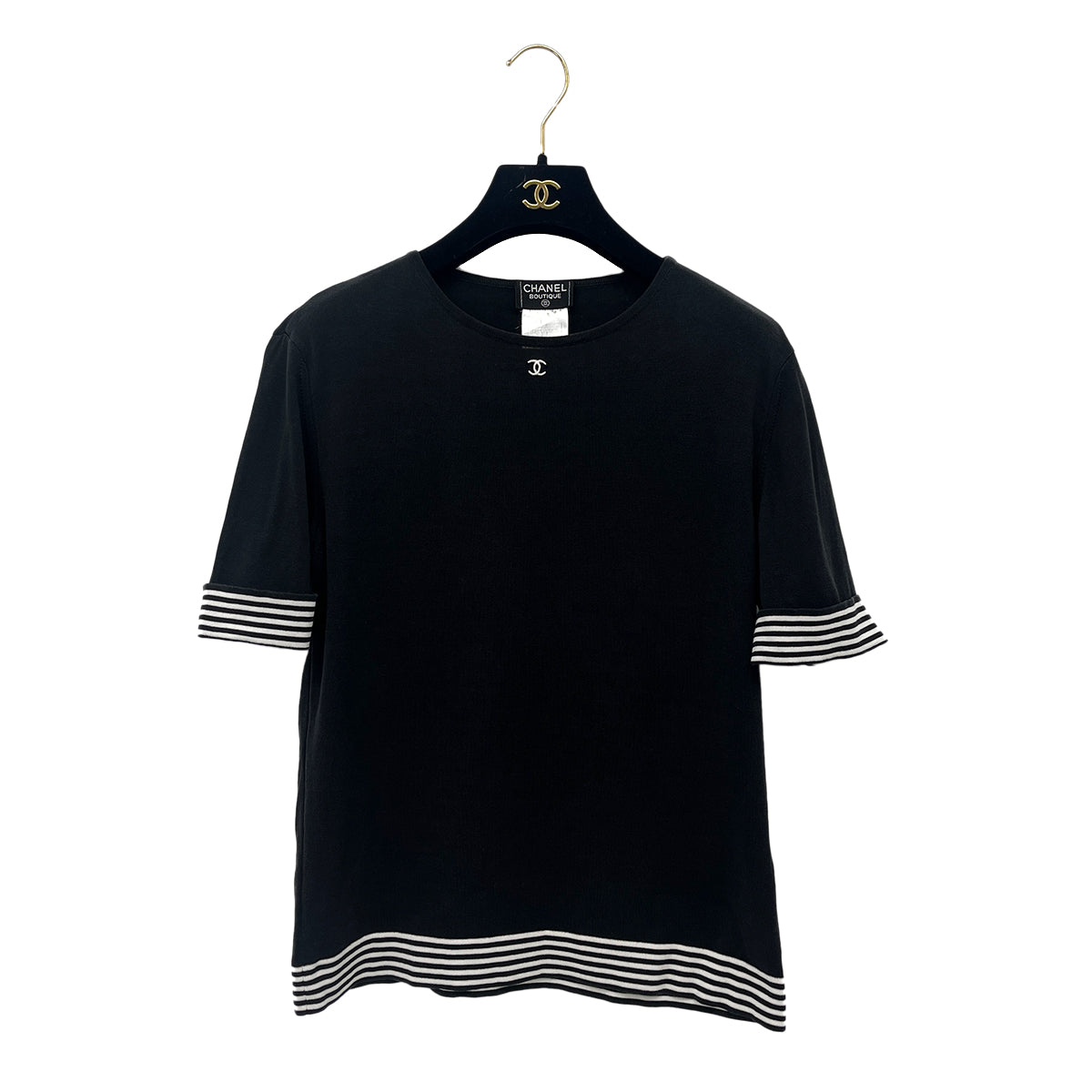 CHANEL COCOMARK BORDER SLEEVES TOPS BLACK COTTON 40 P10 RTW 90286912