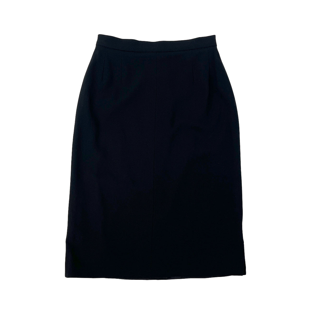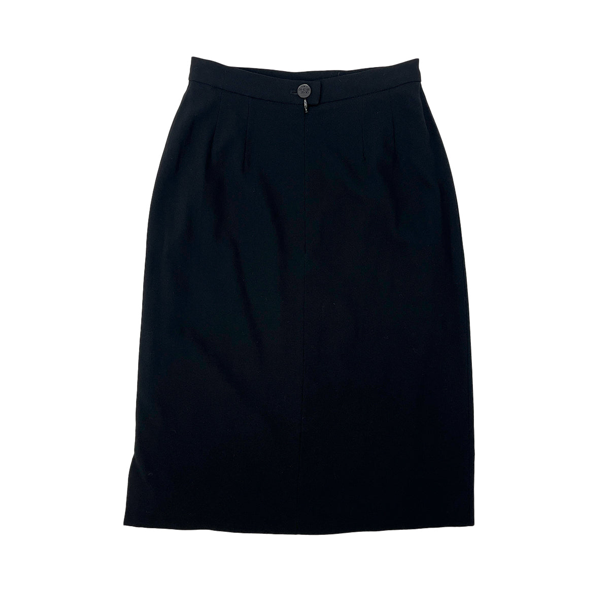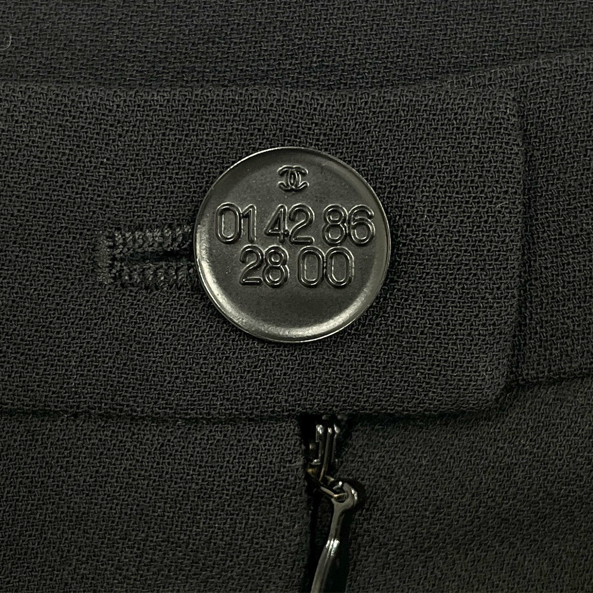 CHANEL VINTAGE COCOMARK CHAIN BELT JACKET COCO BUTTON SKIRT SET BLACK WOOL 34 98P RTW 90287085