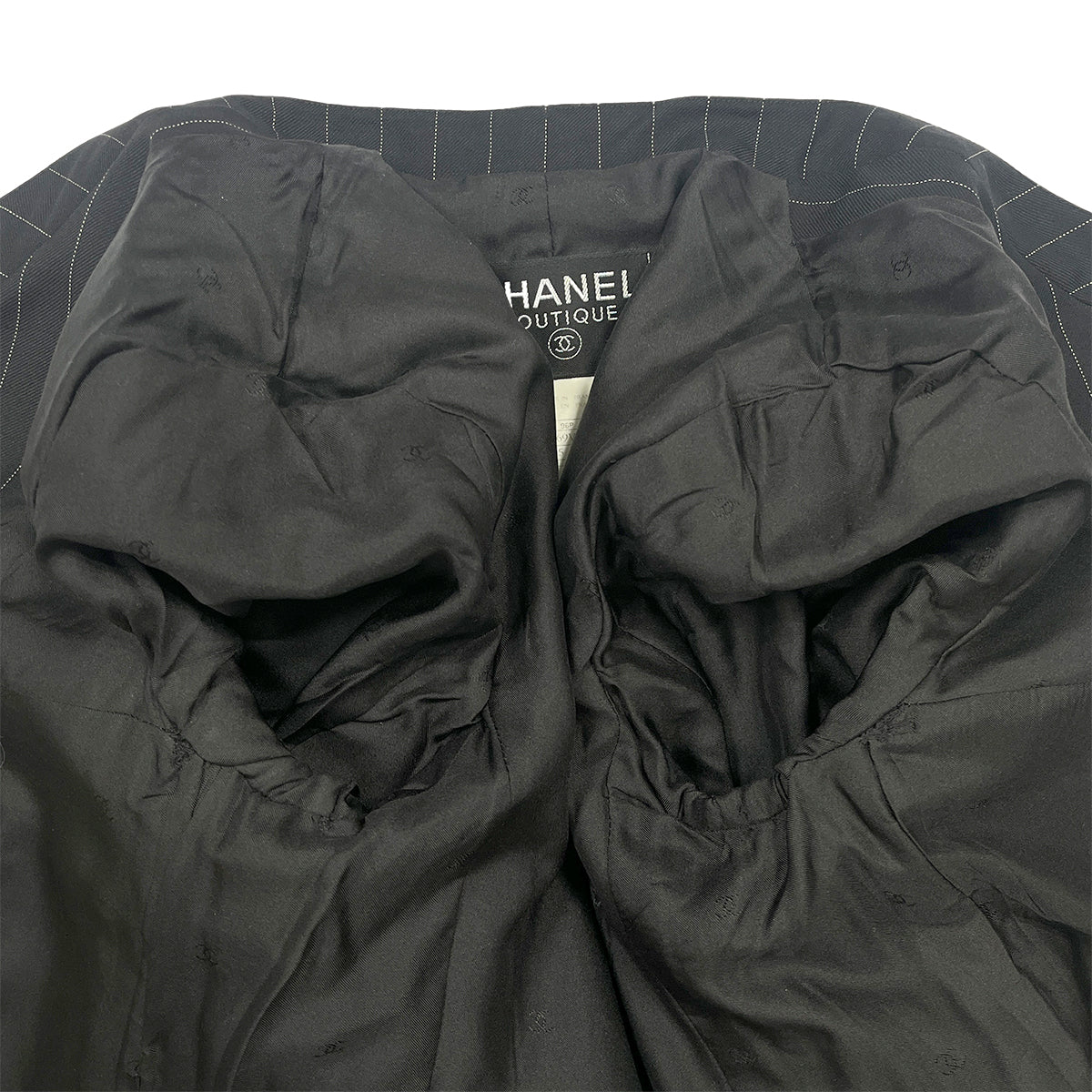 CHANEL VINTAGE COCO BUTTON STRIPE NO-COLLAR JACKET BLACK WOOL 44 96P RTW 90287087