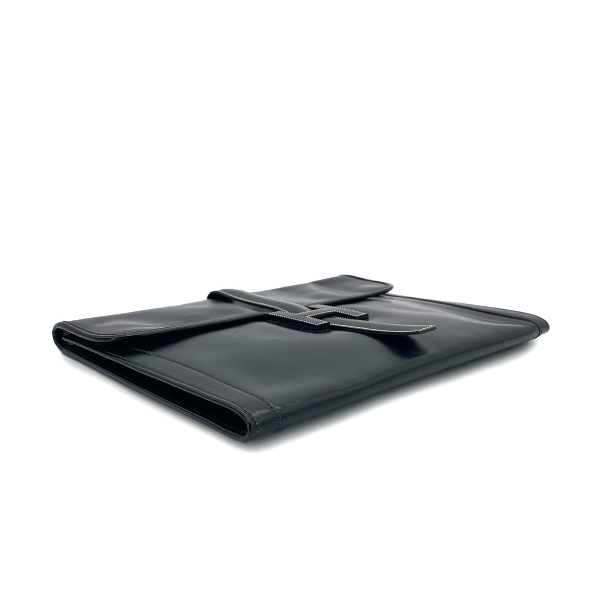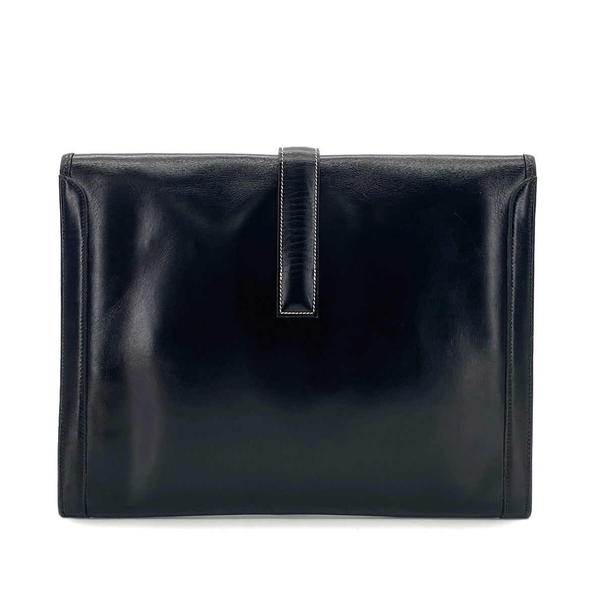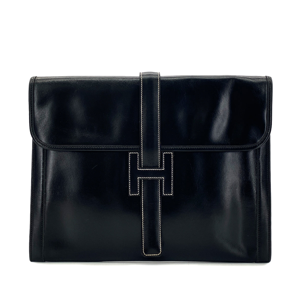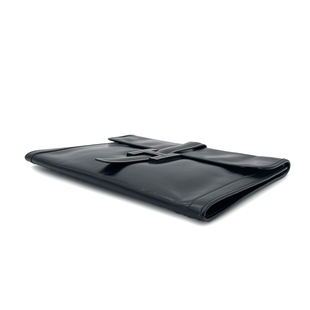HERMES JIGE GM BLACK BOXCALF CLUTCH BAG 〇O 90291368