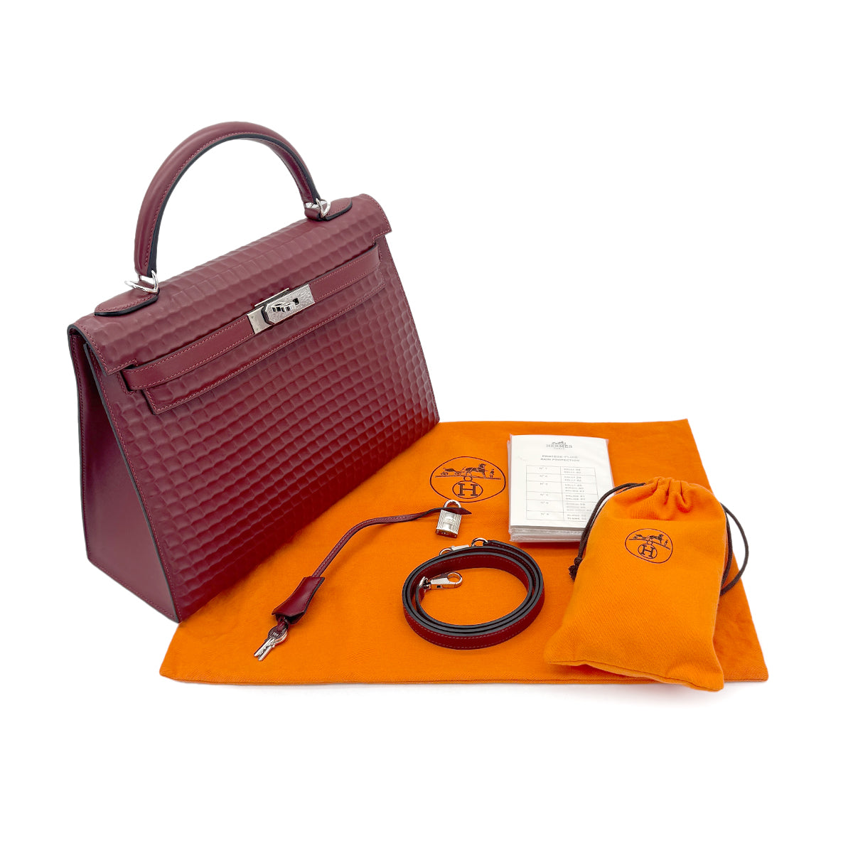 HERMES KELLY WAFFLE 32 SELLIER ROUGE H DEUTCH HAND SHOULDER BAG □G SHW 90292094