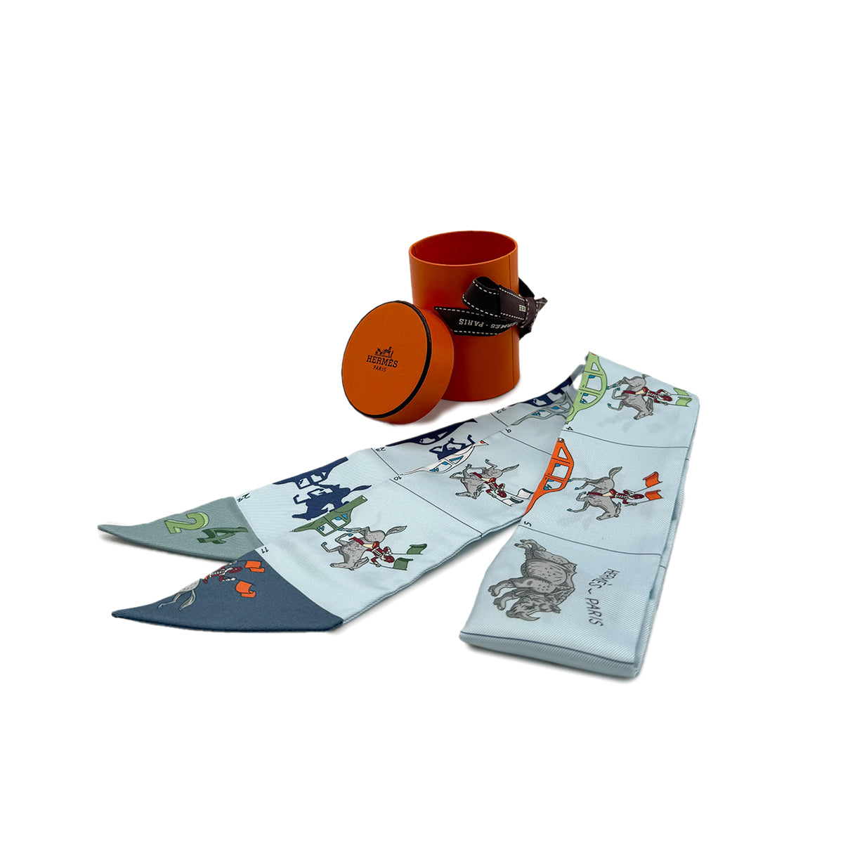 HERMES TWILLY HERMES PARADE SCARF LIGHT BLUE SILK 90295846