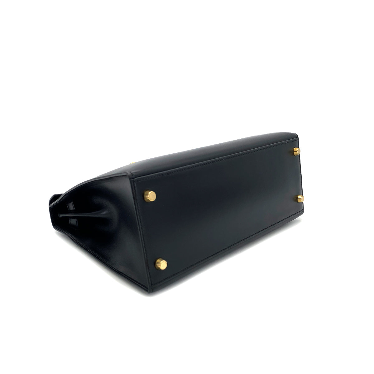 HERMES KELLY 28 SELLIER BLACK BOXCALF HAND SHOULDER BAG □A GHW 90297514