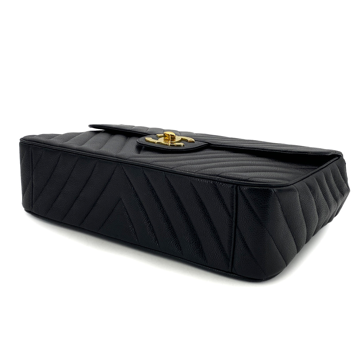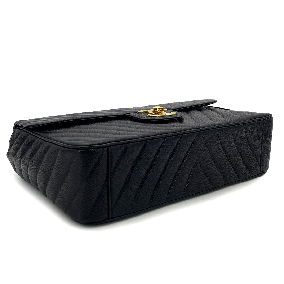 CHANEL VINTAGE MAXI CHEVRON CHAIN SHOULDER BAG BLACK CAVIAR SKIN 90299091