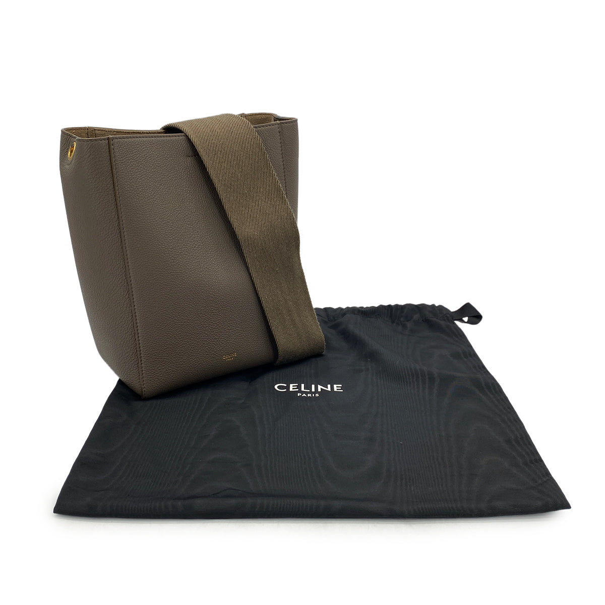 CELINE SANGLE SMALL BUCKET SHOULDER BAG GRAY LEATHER 90299160