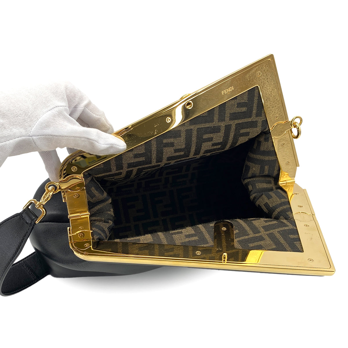 FENDI FIRST MEDIUM CLUTCH SHOULDER BAG LEATHER BLACK 8BP127 90299314