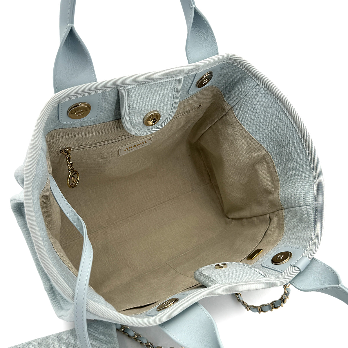 CHANEL DEAUVILLE SMALL CHAIN TOTE BAG LIGHT BLUE CANVAS LEATHER 90299536