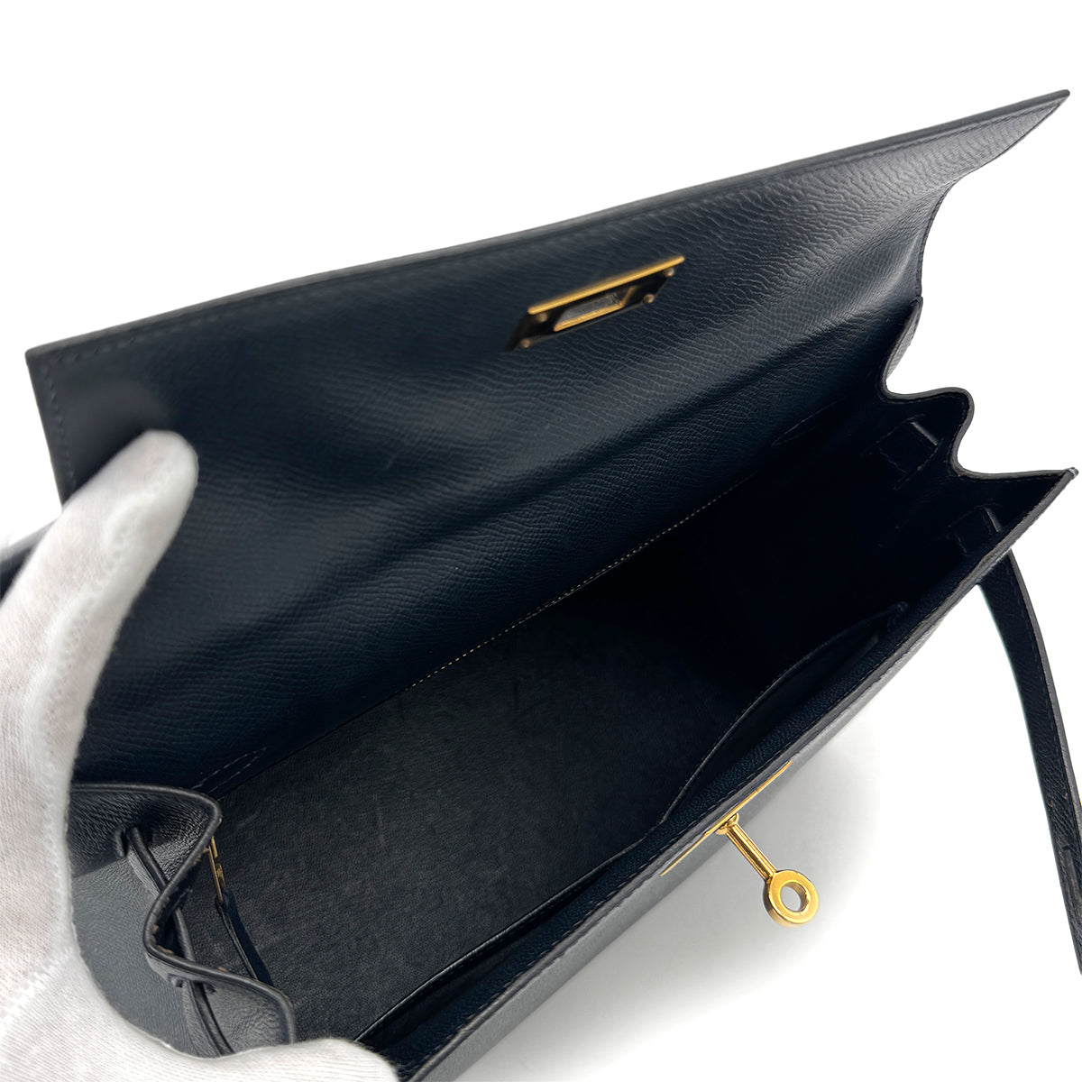 HERMES KELLY 28 SELLIER BLUE INDIGO COUCHEVEL HAND SHOULDER BAG 〇U GHW 90300026