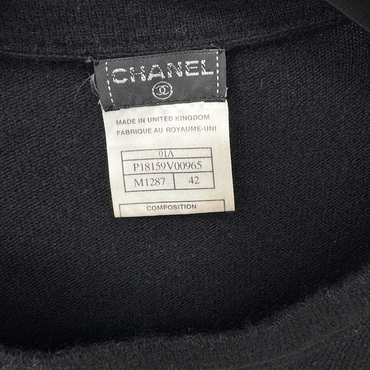 CHANEL COCOMARK LONG SLEEVE TOPS BLACK WHITE CASHMERE 42 01A RTW 90300867