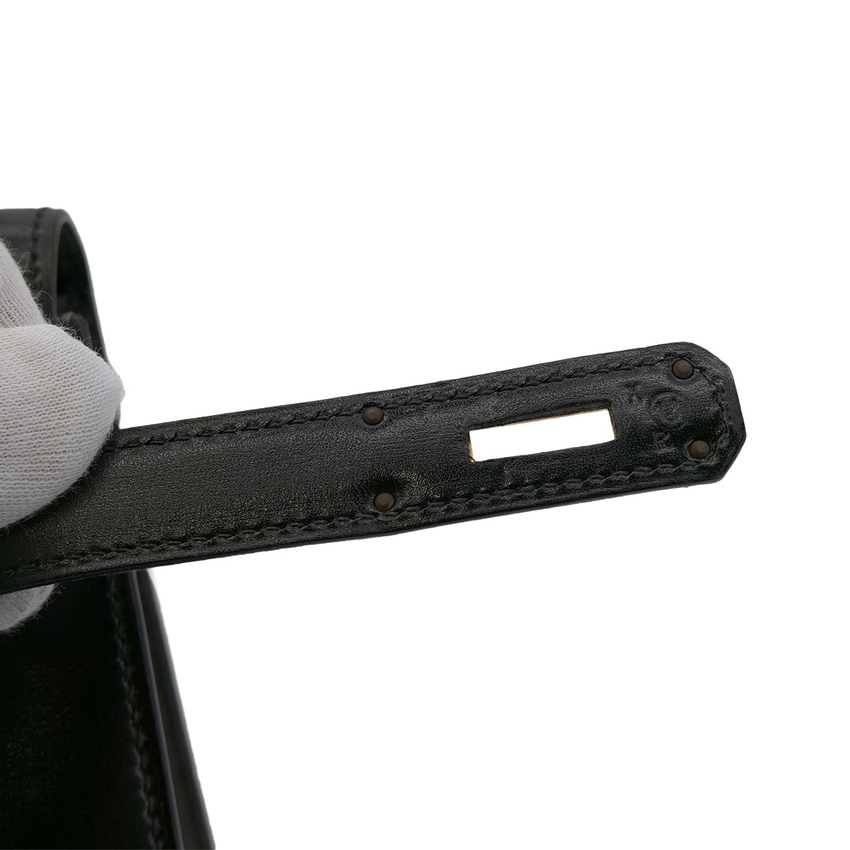 HERMES KELLY 28 SELLIER BLACK BOX CALF HAND SHOULDER BAG 〇U GHW 90301088