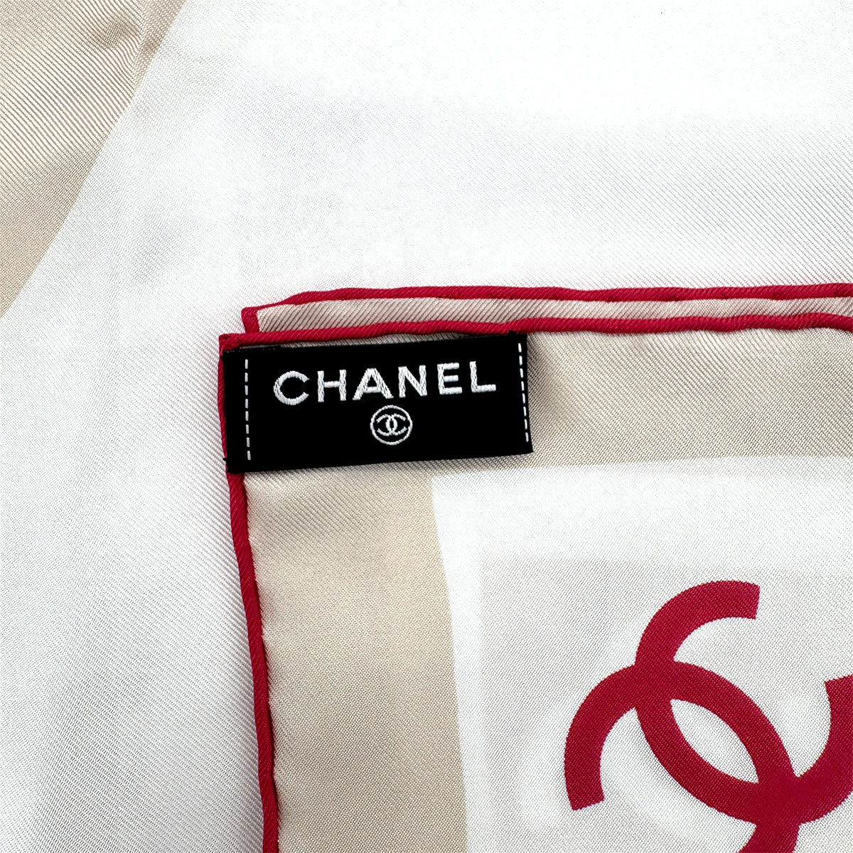 CHANEL COCOMARK SCARF BEIGE WHITE RED SILK 90301122