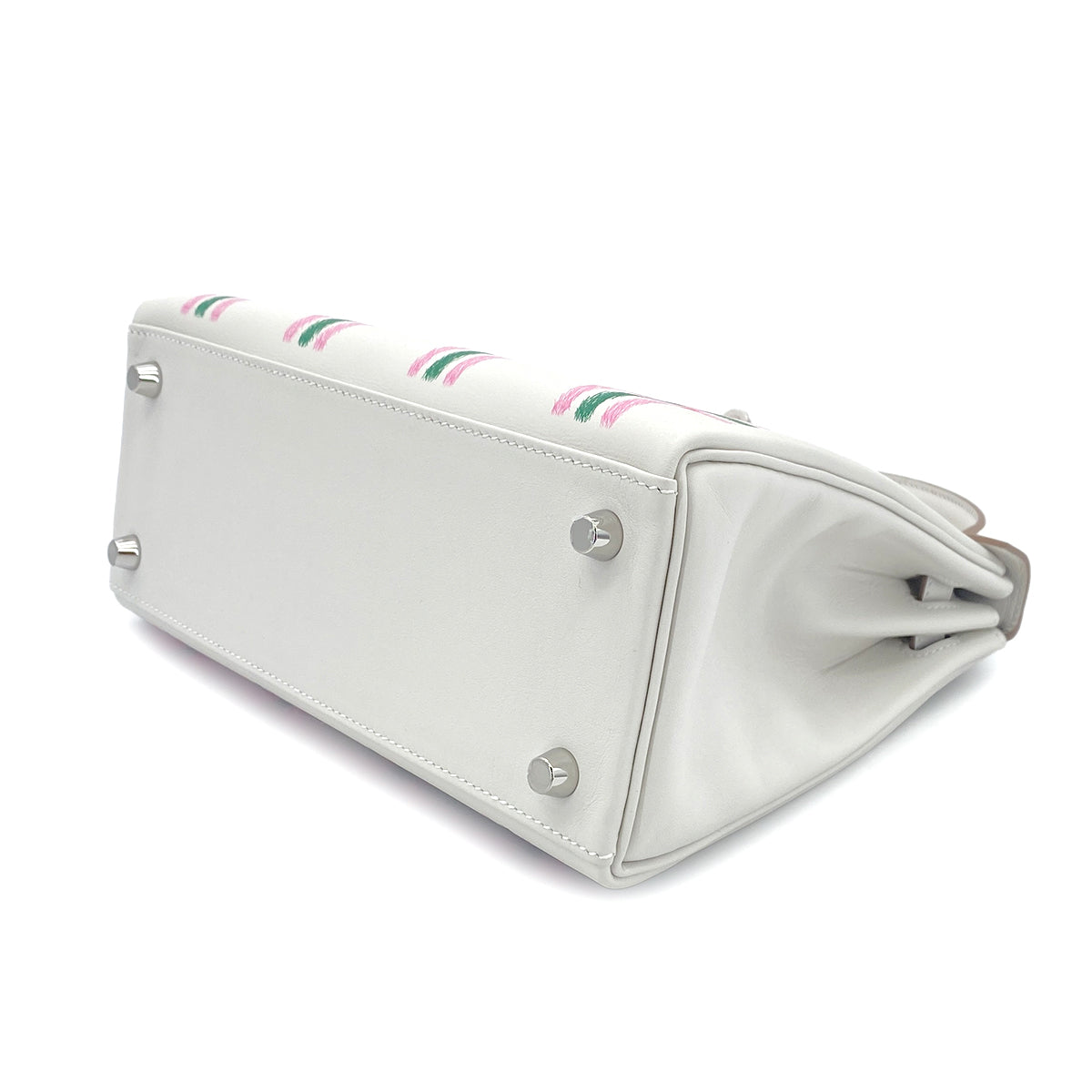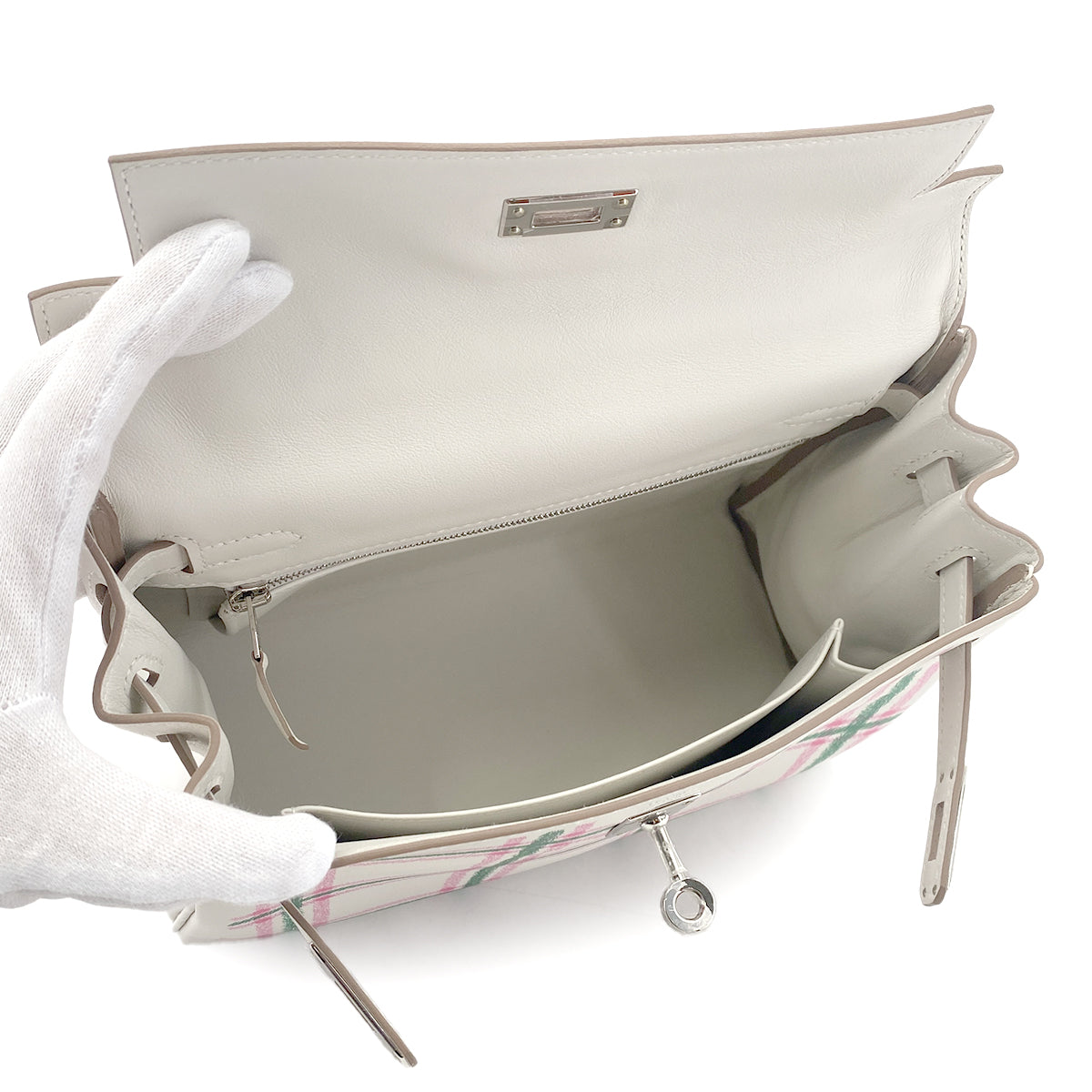 HERMES KELLY25 RETOURNE TARTAN LIGHT NEW GRIS PERLE VERT MOYEN ROSE BUBBLEGUM SWIFT K 90301644