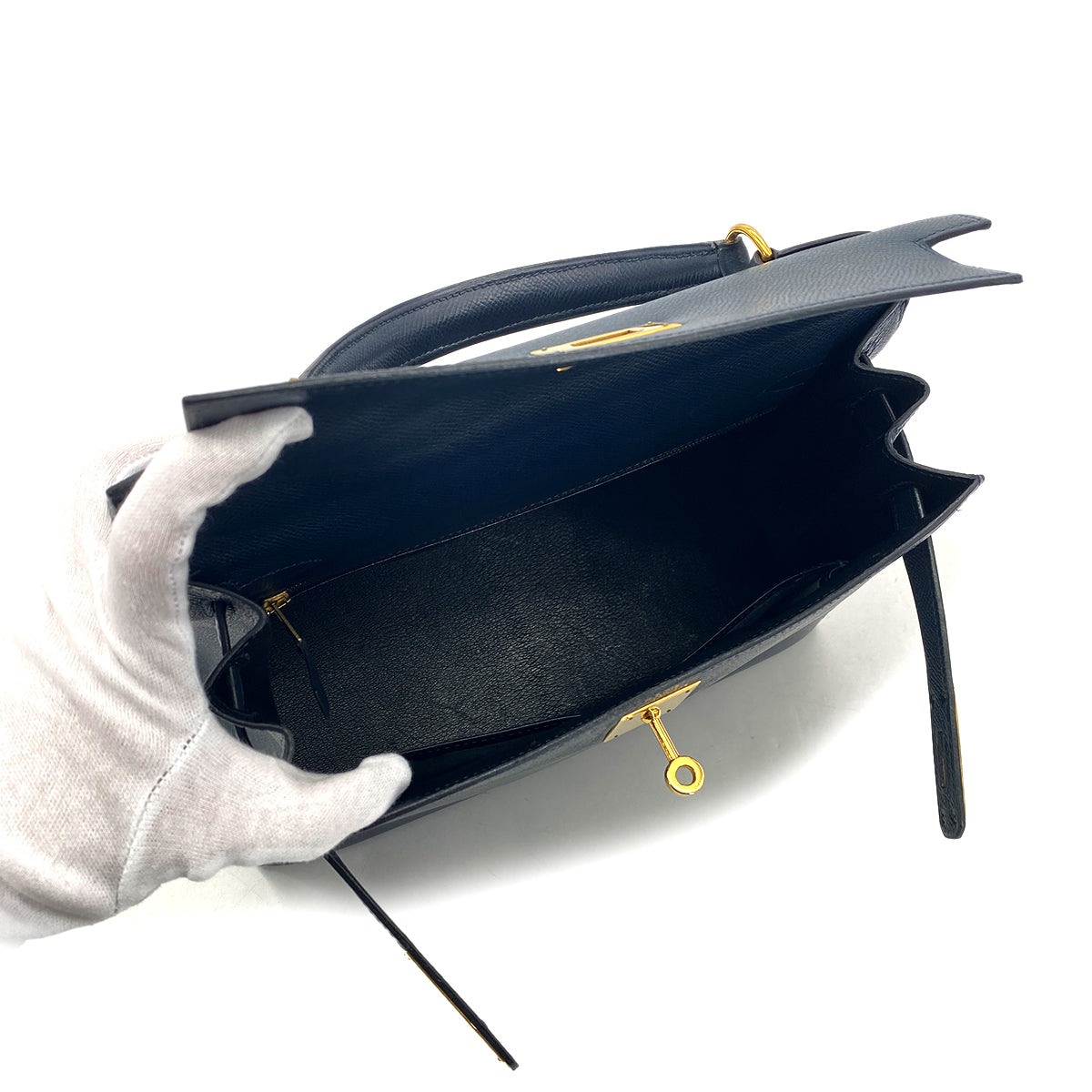 HERMES KELLY 28 SELLIER BLUE MARINE COUCHEVEL HAND SHOULDER BAG 〇Y GHW 90301705
