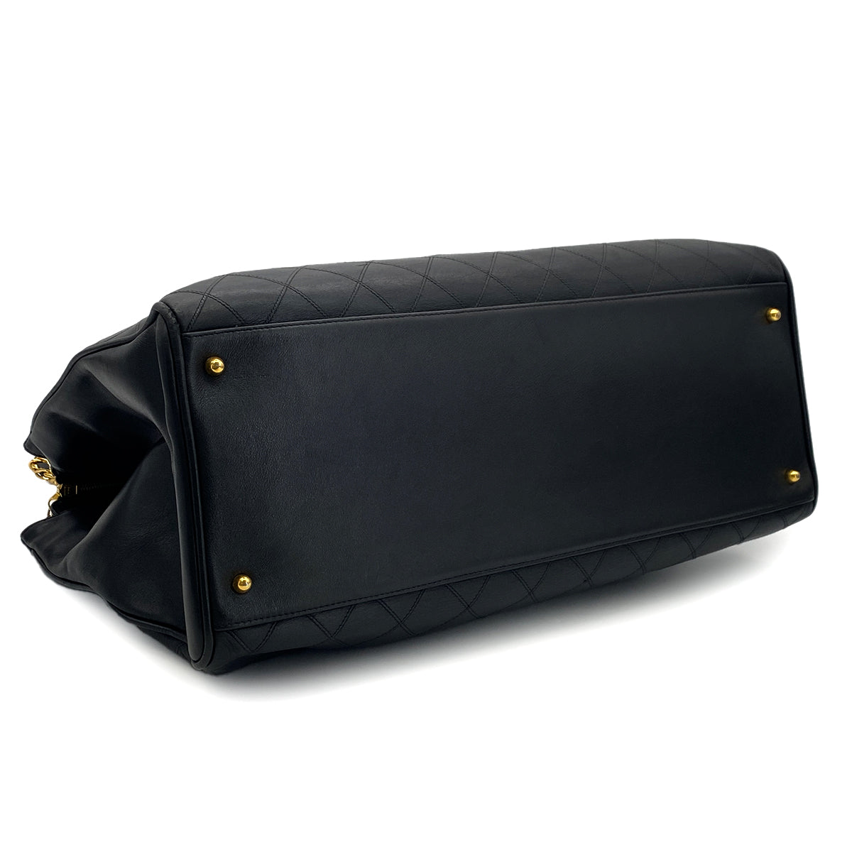 CHANEL VINTAGE SUPER MODEL BICOLORE CHAIN TOTE BAG BLACK LEATHER 90301740
