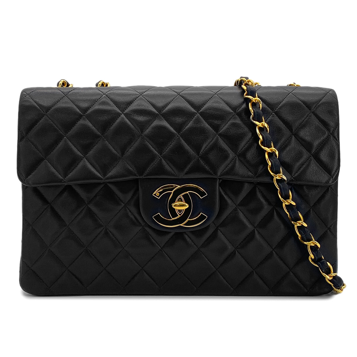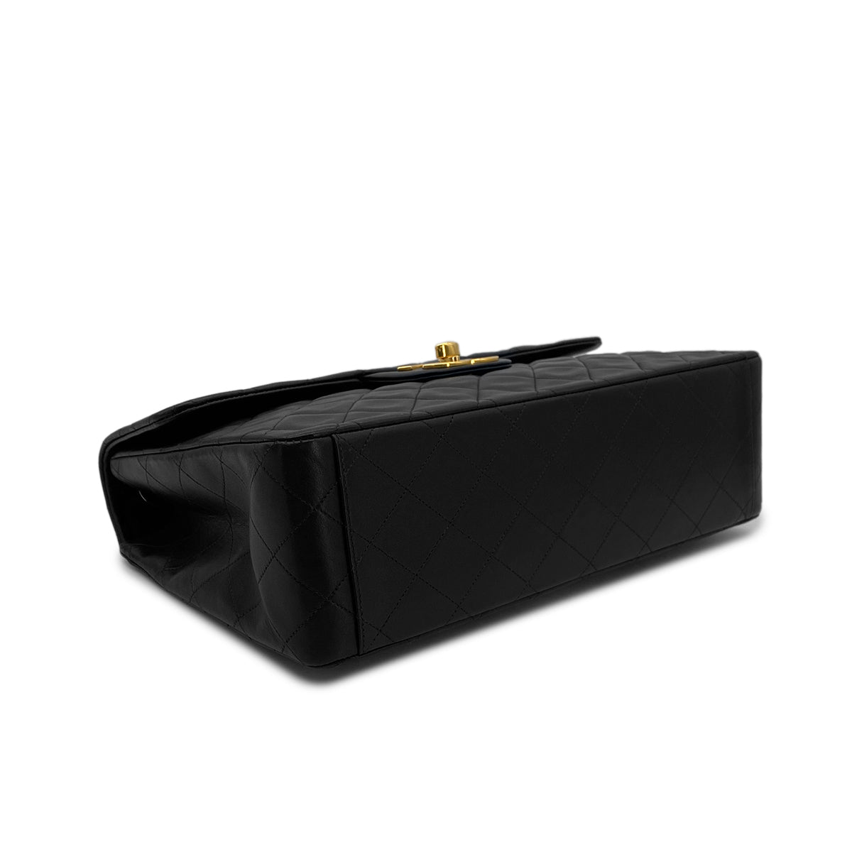 CHANEL VINTAGE MAXI MATELASSE 34 CHAIN SHOULDER BAG BLACK LAMB SKIN 90301745