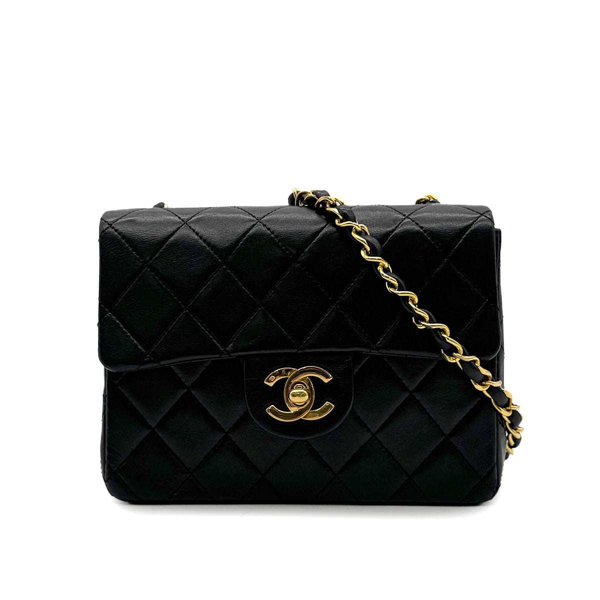 CHANEL VINTAGE MINI SQUARE 17 CHAIN SHOULDER BAG BLACK LAMB SKIN 90302858