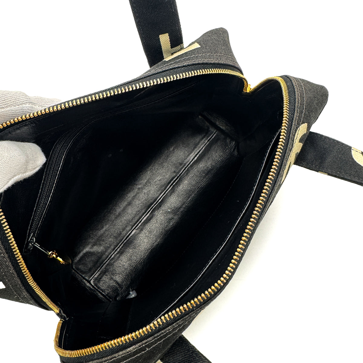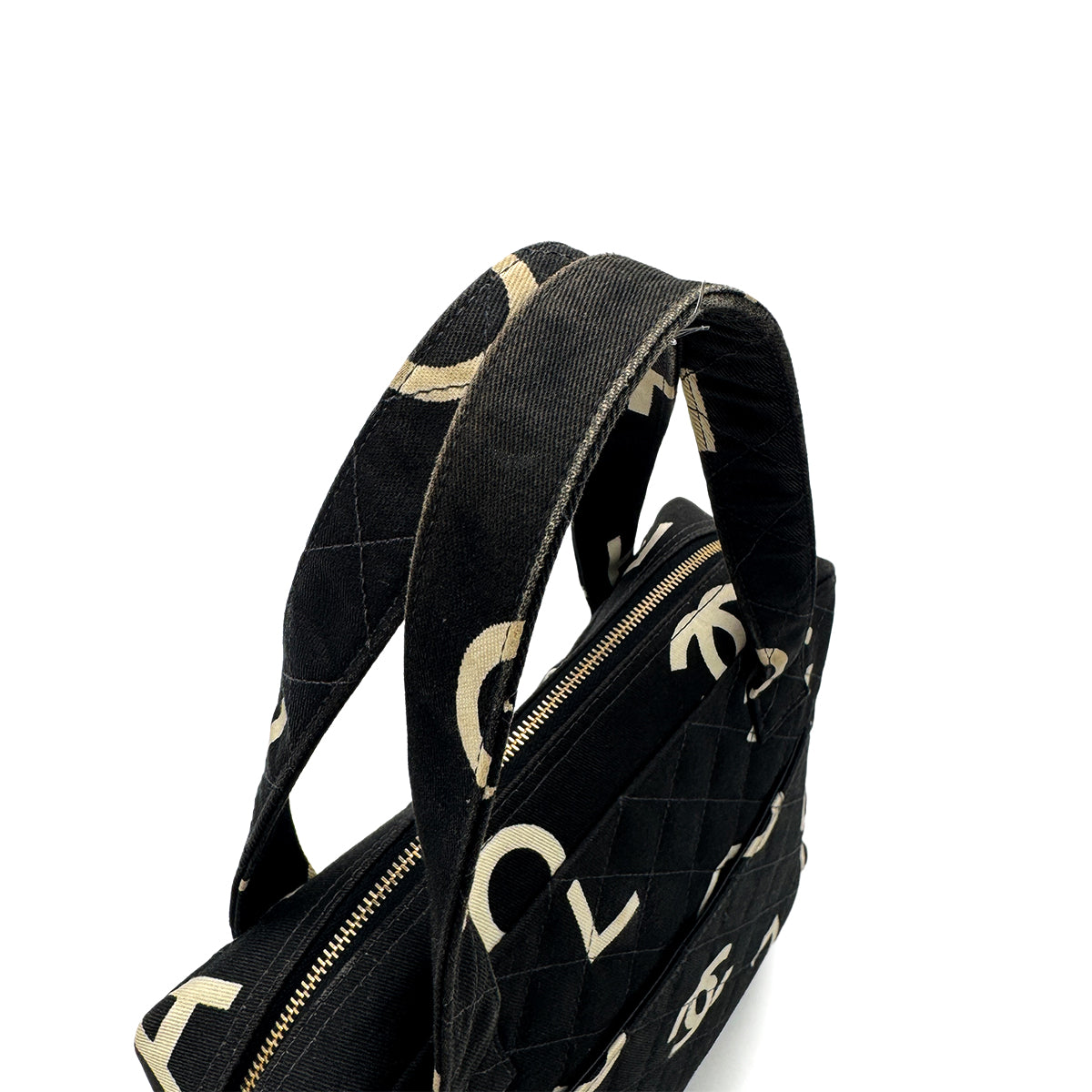 CHANEL VINTAGE MATELASSE LOGO HAND BAG BLACK WHITE CANVAS 90303315