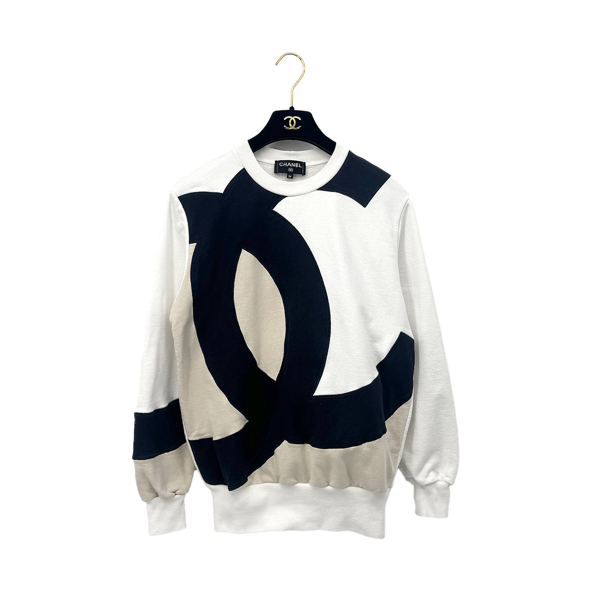 CHANEL BIG COCO MARK SWEATSHIRT BLACK WHITE BEIGE COTTON 36 P58 RTW 90284002