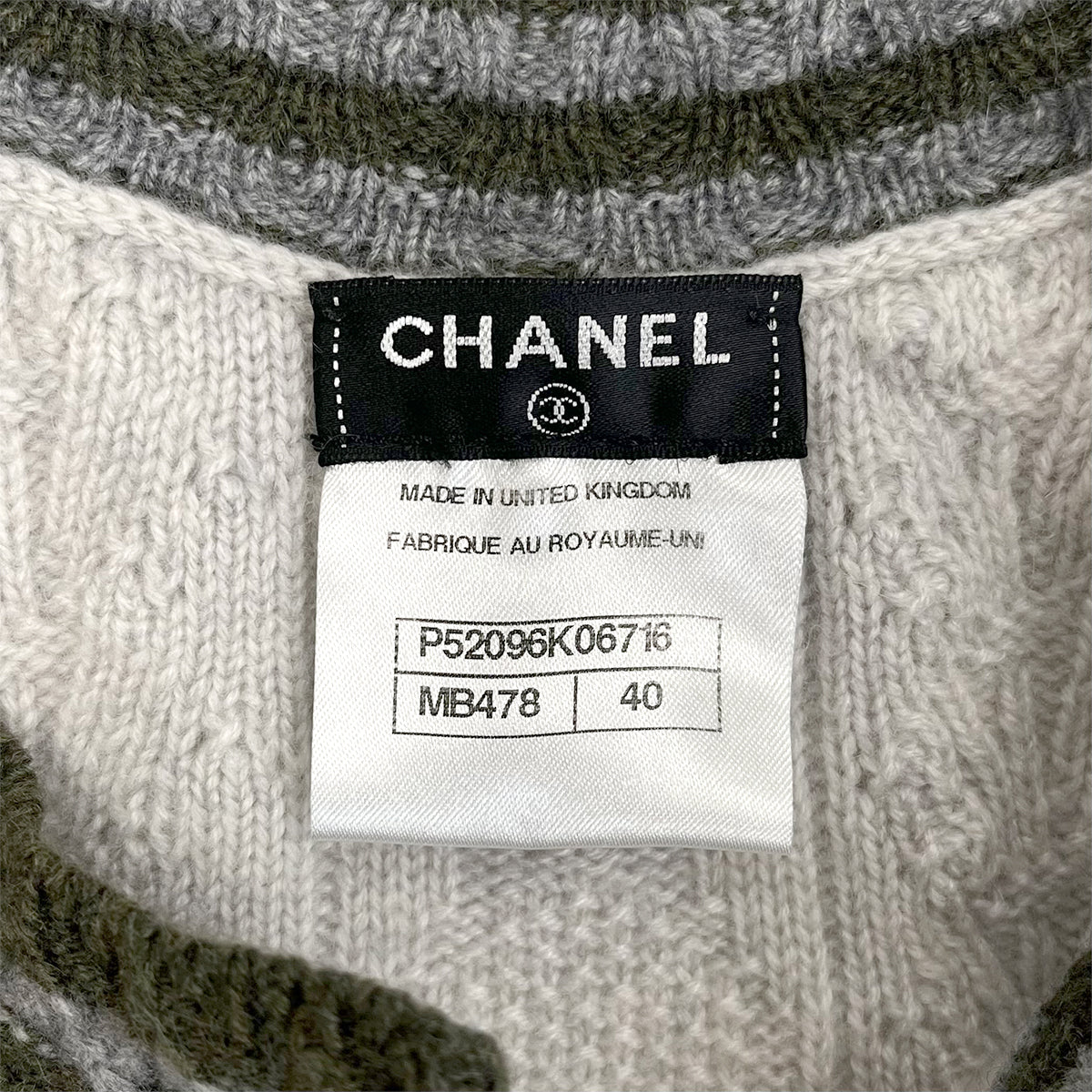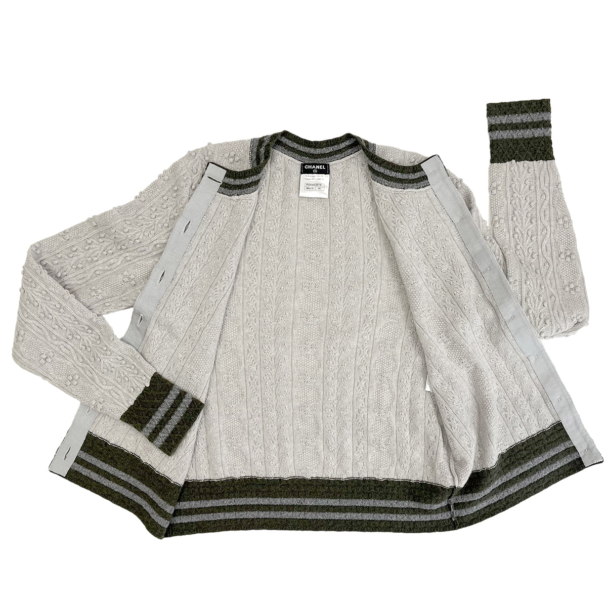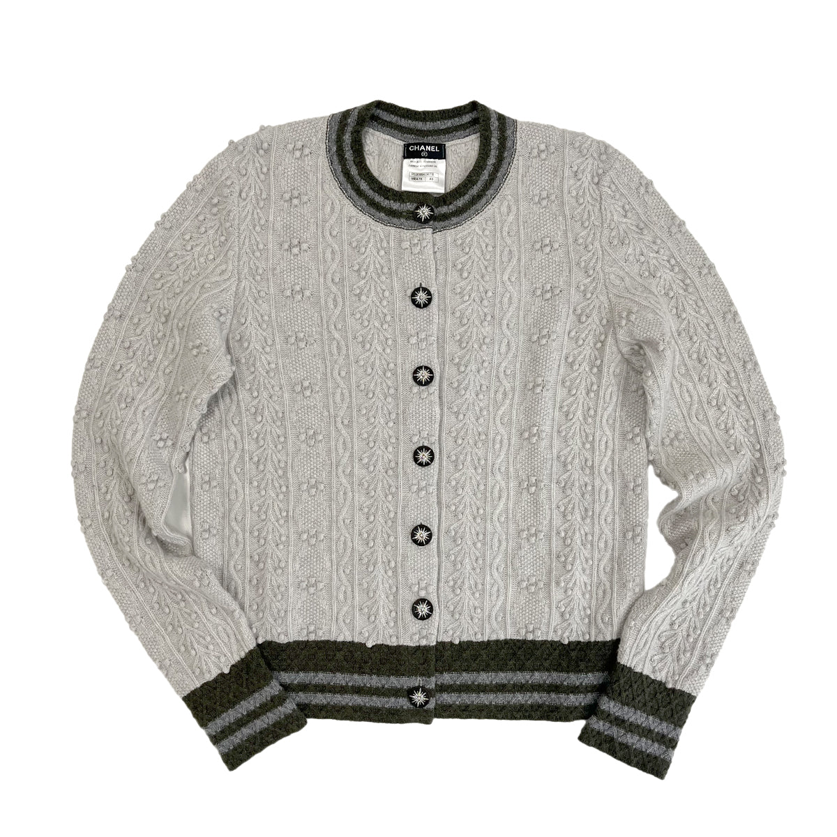 CHANEL CARDIGAN RHINESTONE BUTTON GRAY KAHKI CASHMERE 40 P52 RTW 90284444
