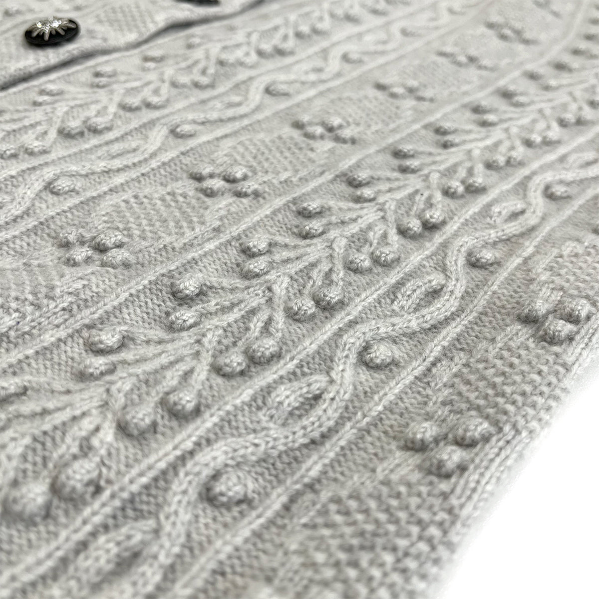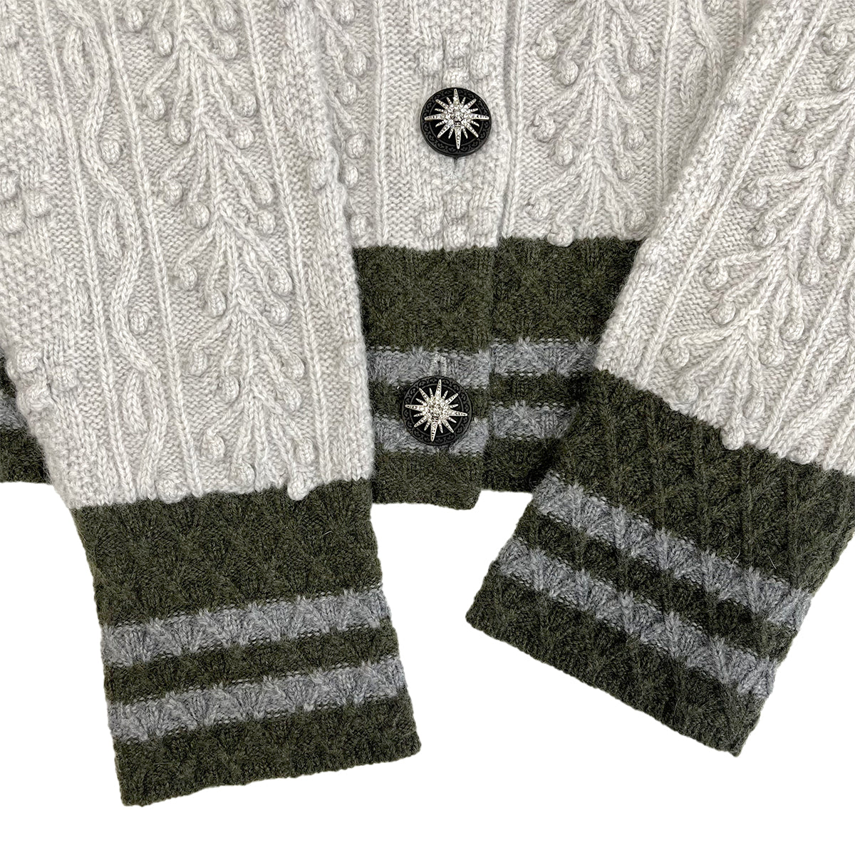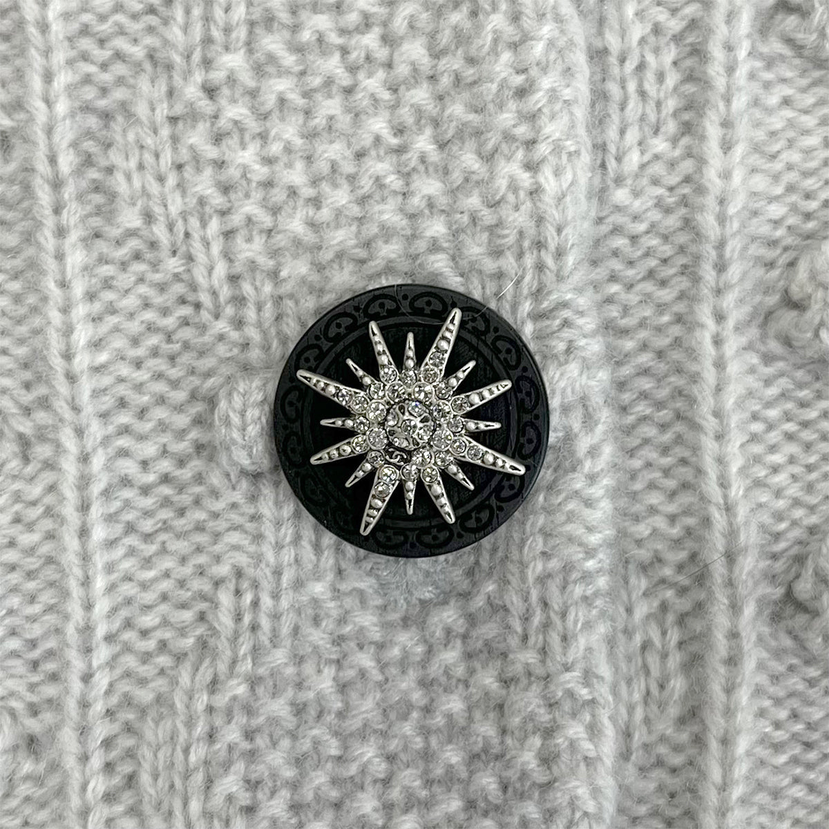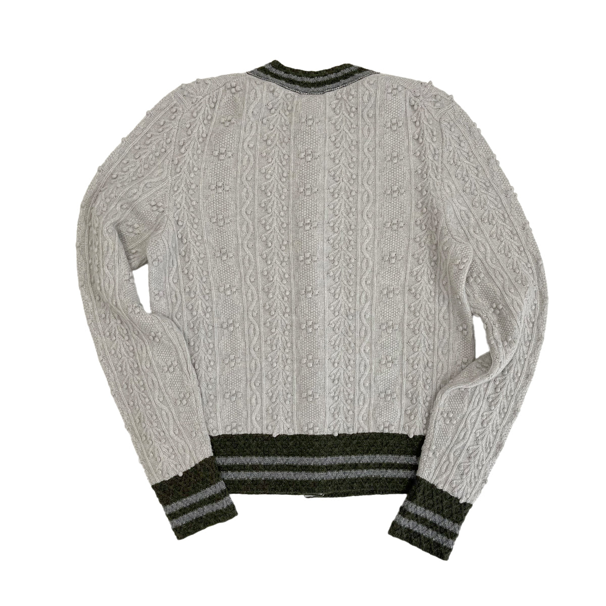 CHANEL CARDIGAN RHINESTONE BUTTON GRAY KAHKI CASHMERE 40 P52 RTW 90284444