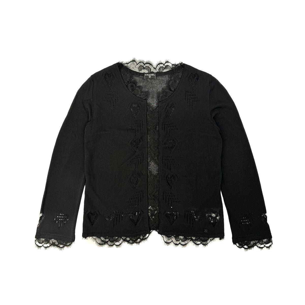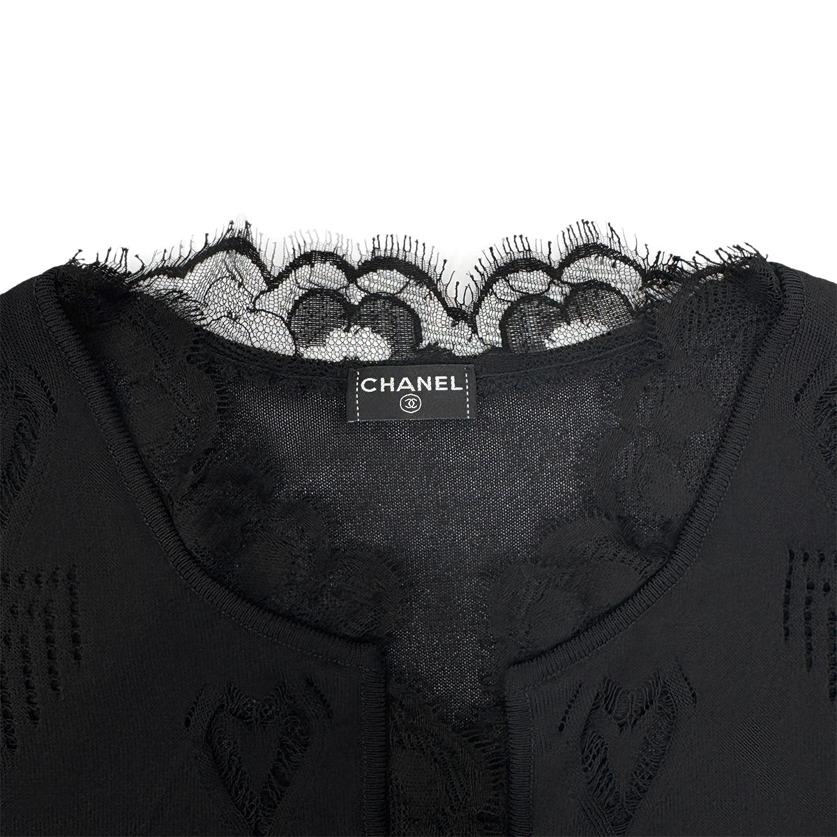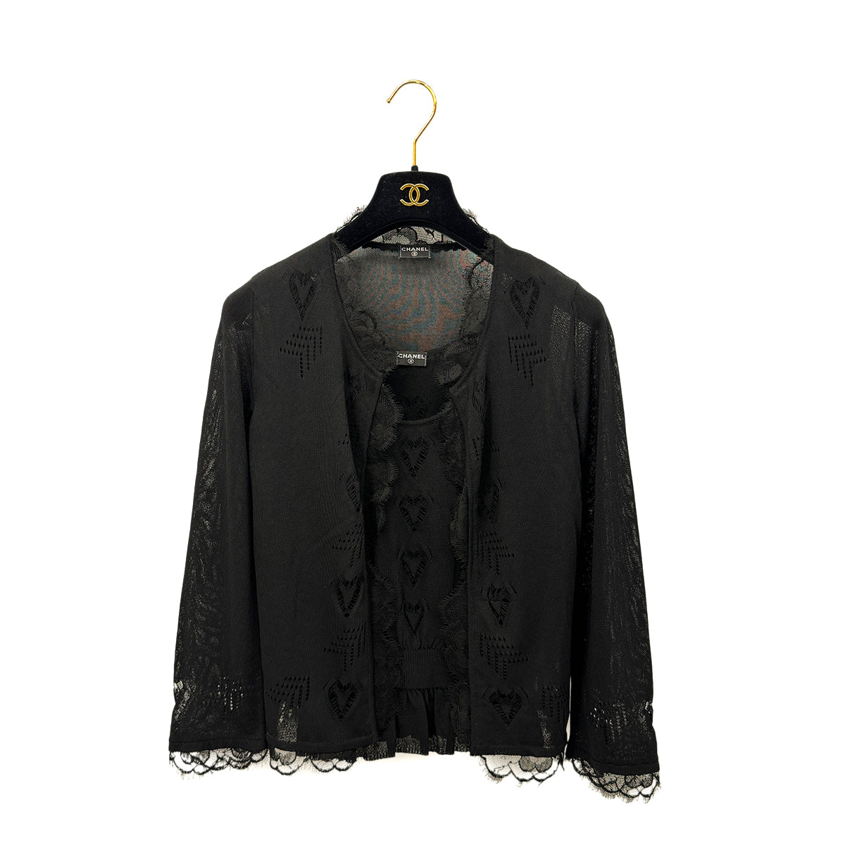 CHANEL CARDIGAN SLEEVELESS TOPS SET LACE HEART BLACK VISCOSE 36 06P RTW 90284582
