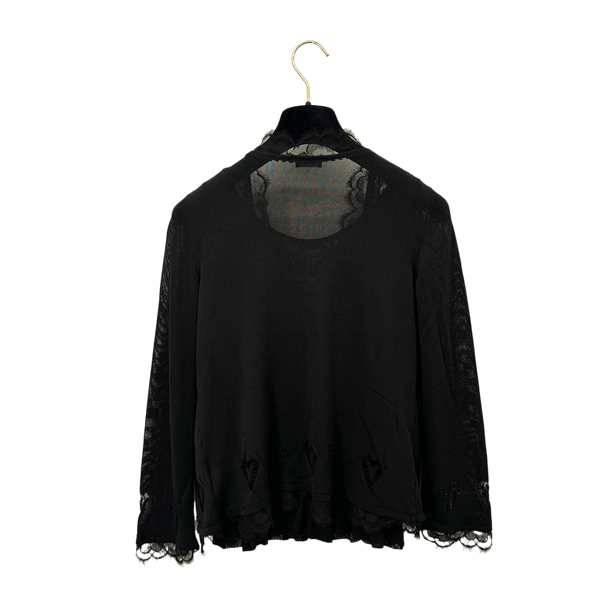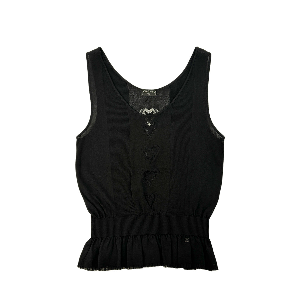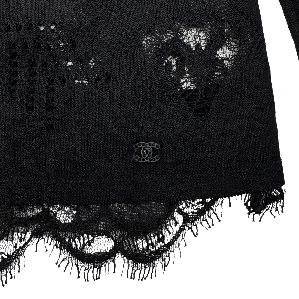 CHANEL CARDIGAN SLEEVELESS TOPS SET LACE HEART BLACK VISCOSE 36 06P RTW 90284582