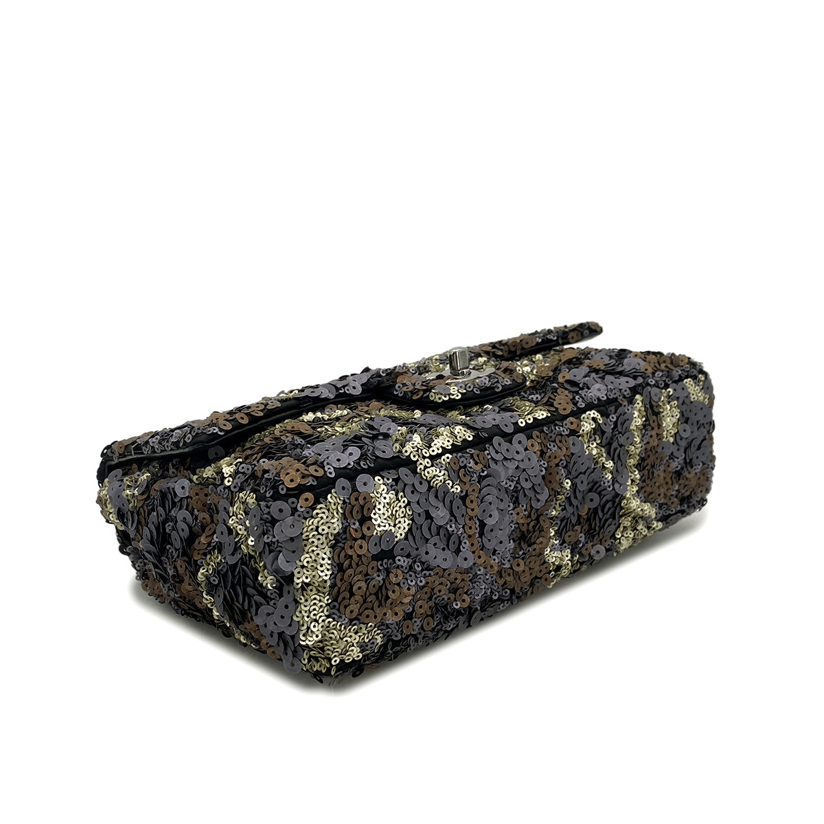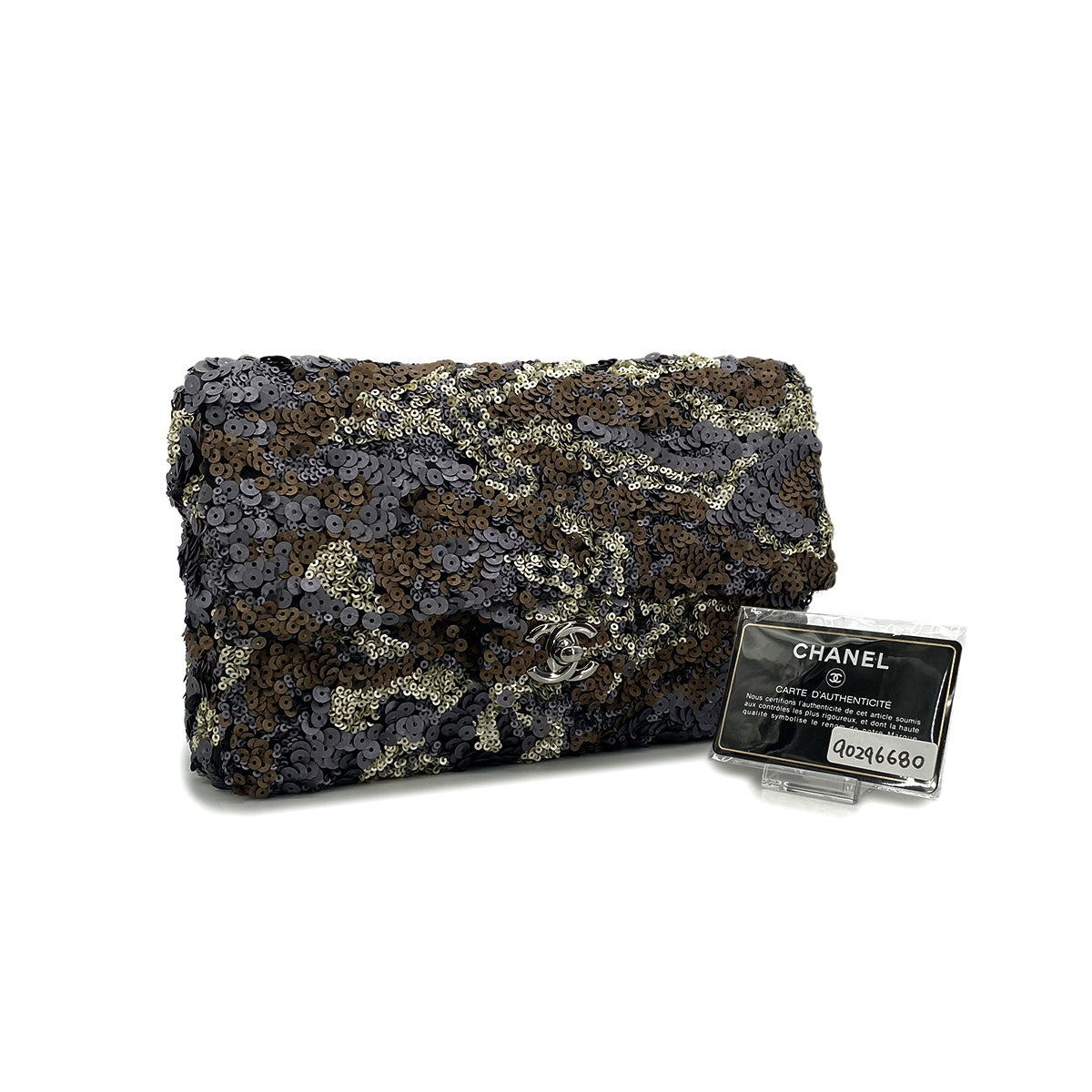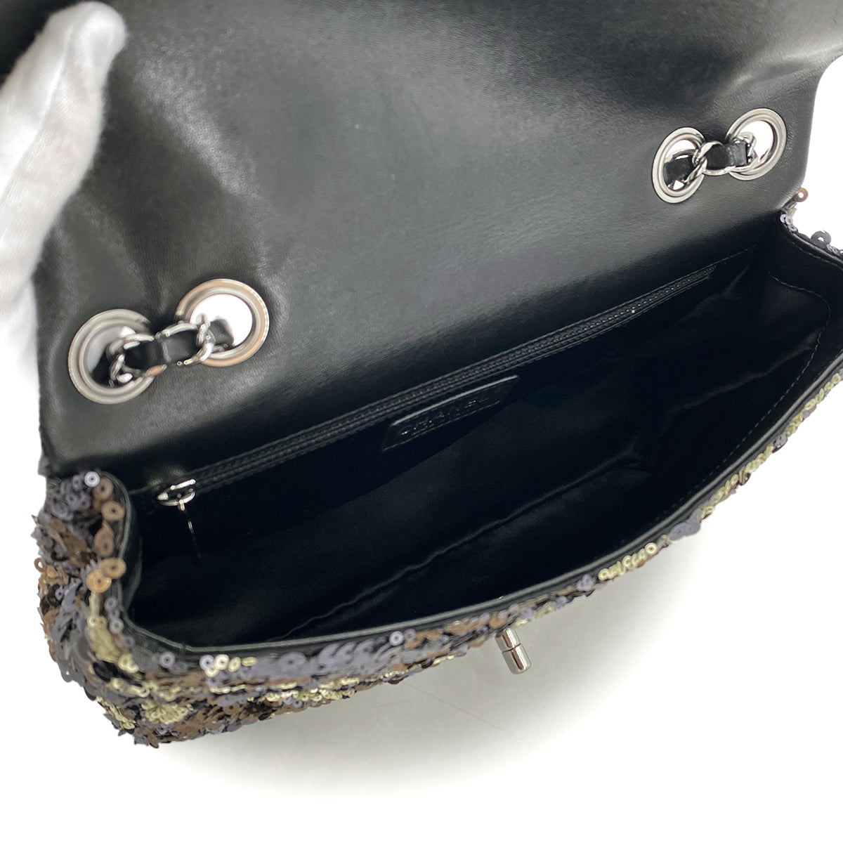 CHANEL CHAIN SHOULDER BAG GRAY BRONZE SEQUINS LEATHER 90296680