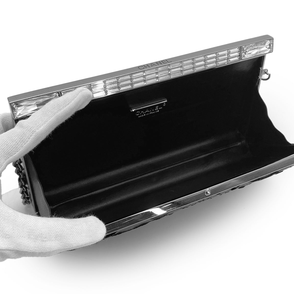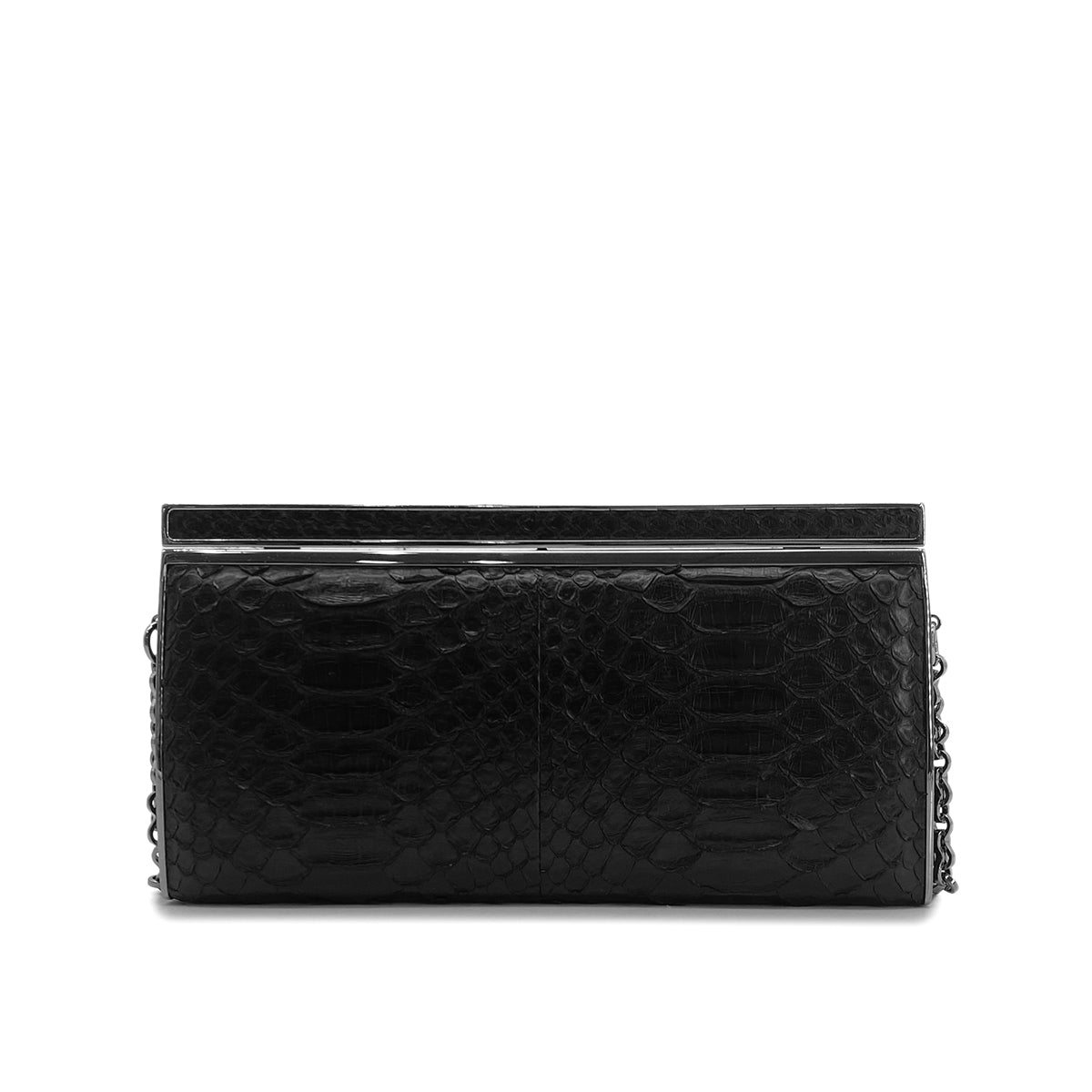 CHANEL CHAIN SHOULDER BAG LOGO RHINESTONE BLACK PYTHON 90281546