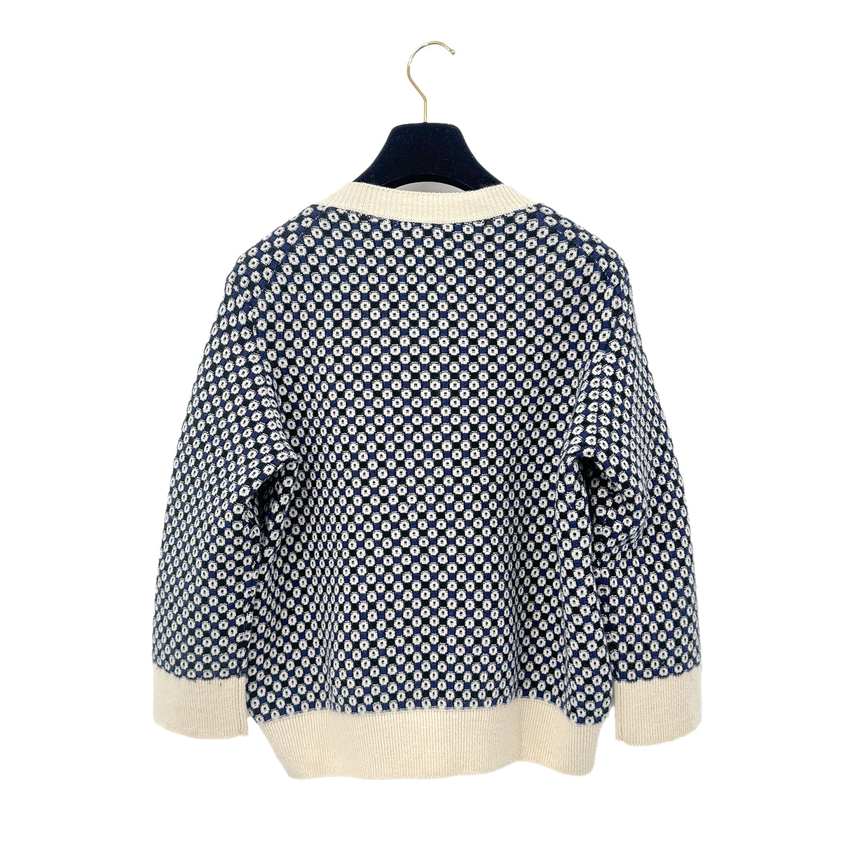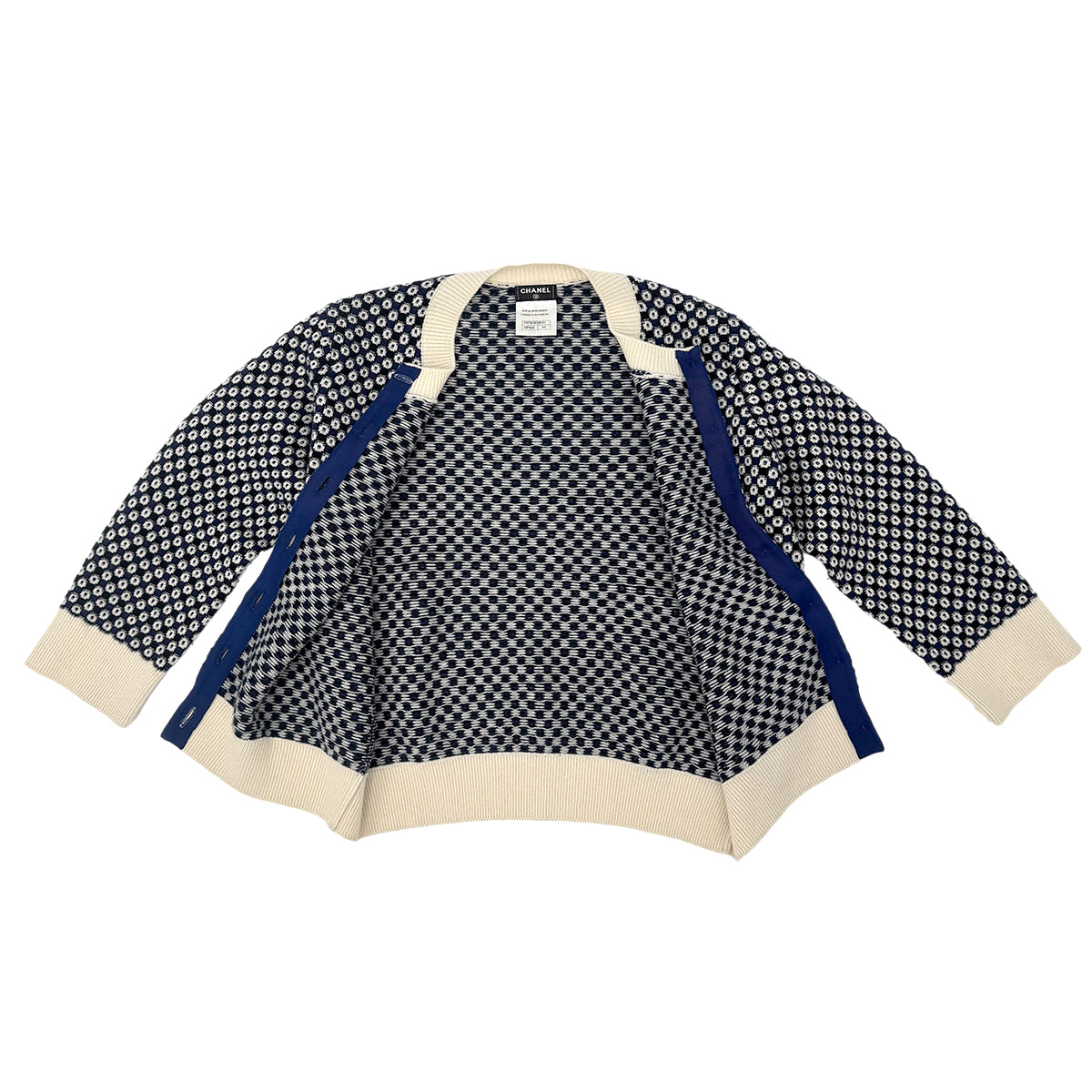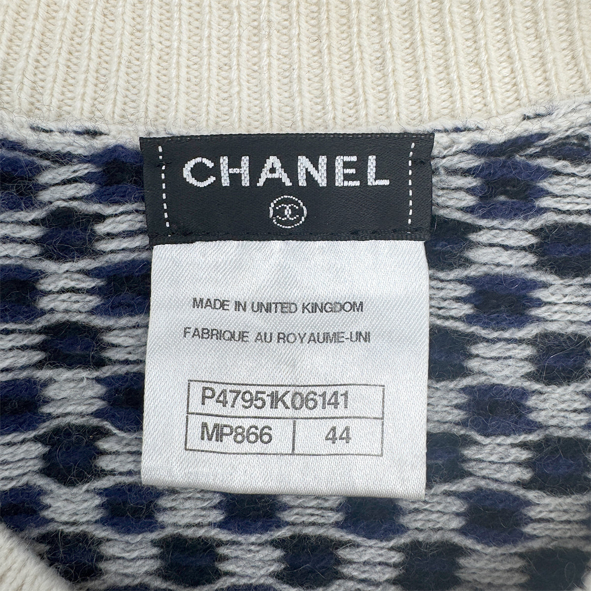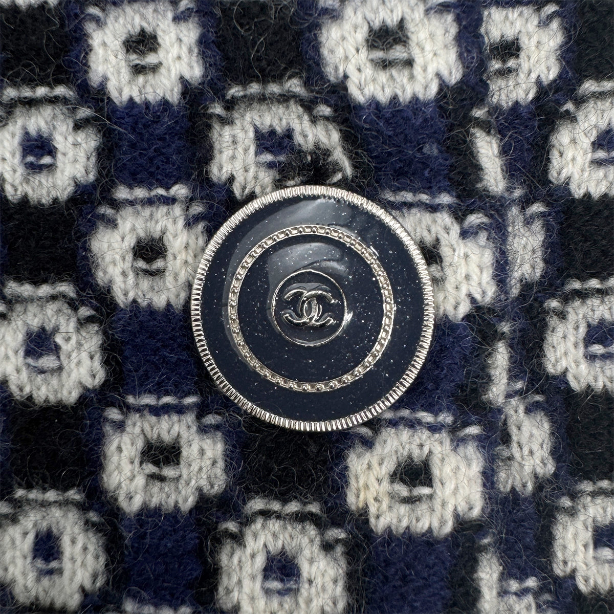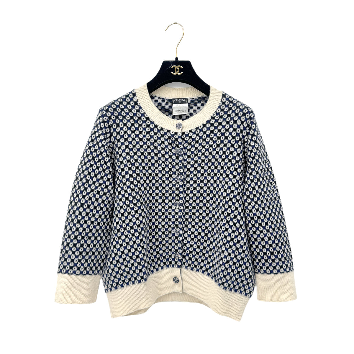 CHANEL COCO BUTTON CARDIGAN NAVY WHITE CASHMERE 44 P47 RTW 90284003
