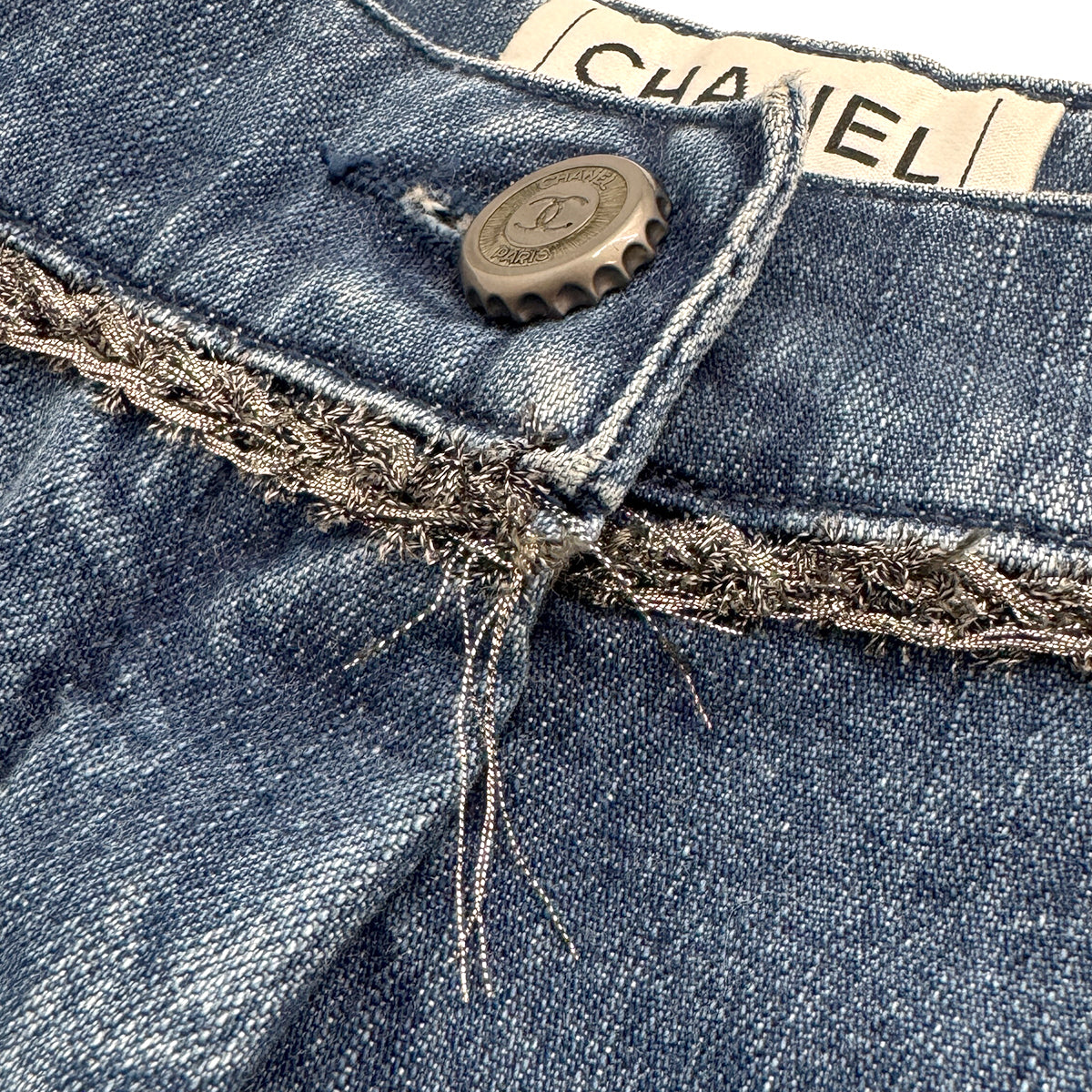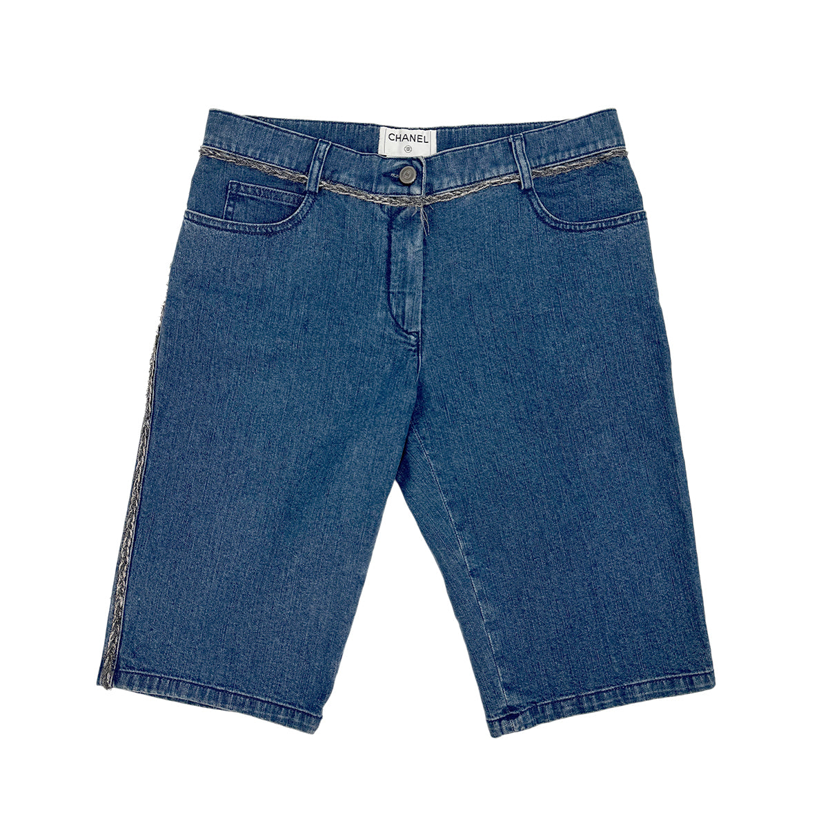 CHANEL COCO BUTTON DENIM SHORTS BLUE COTTON 36 06P RTW 90284005