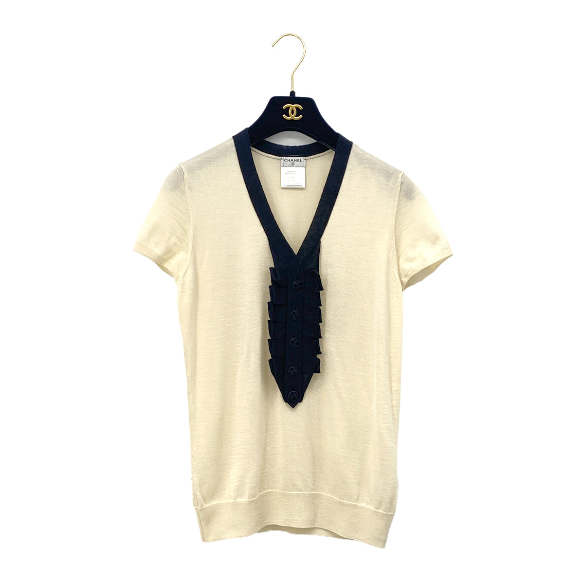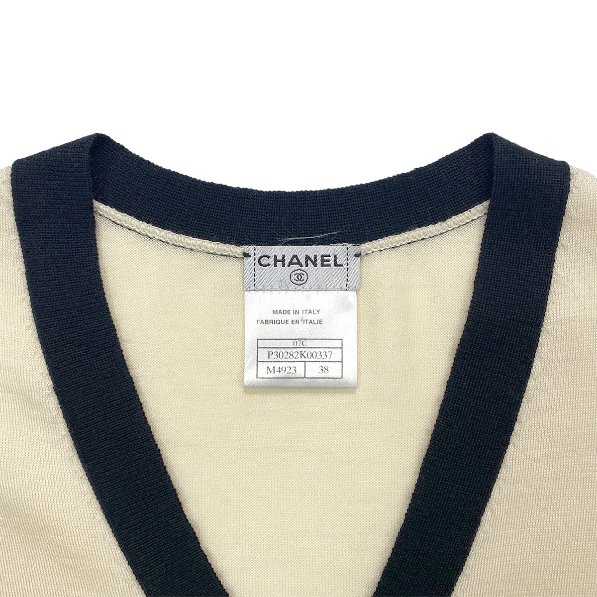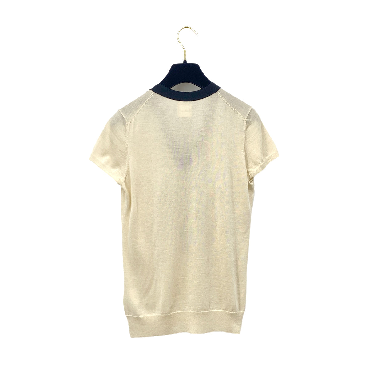 CHANEL COCO BUTTON KNIT TOPS SHORT SLEEVE BEIGE BLACK CASHMERE 38 07C RTW 90283996