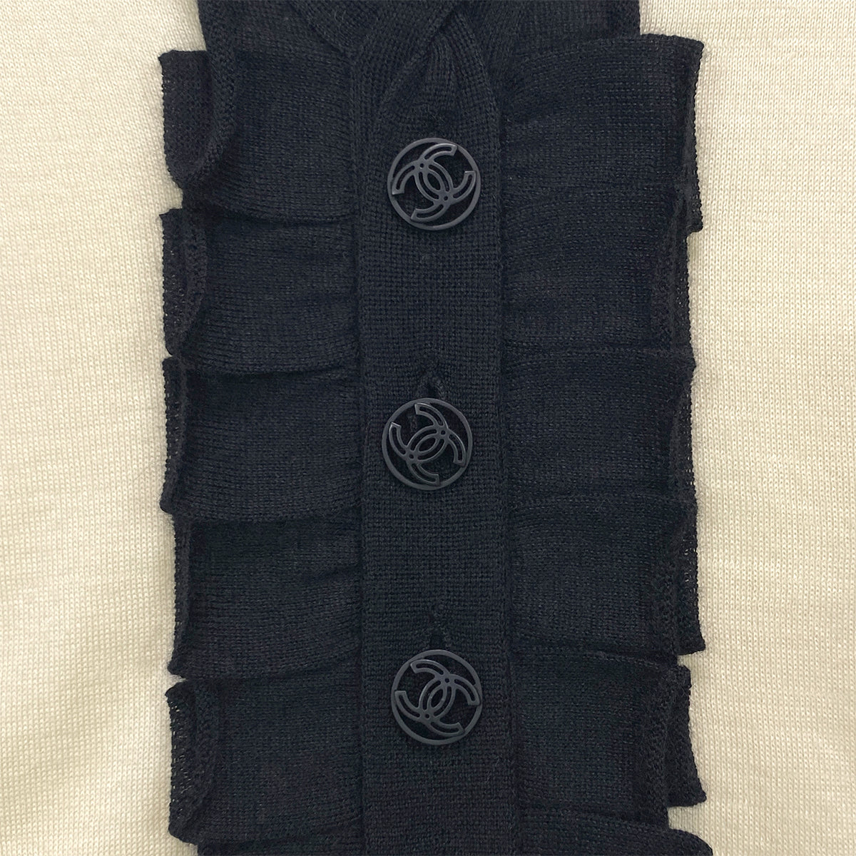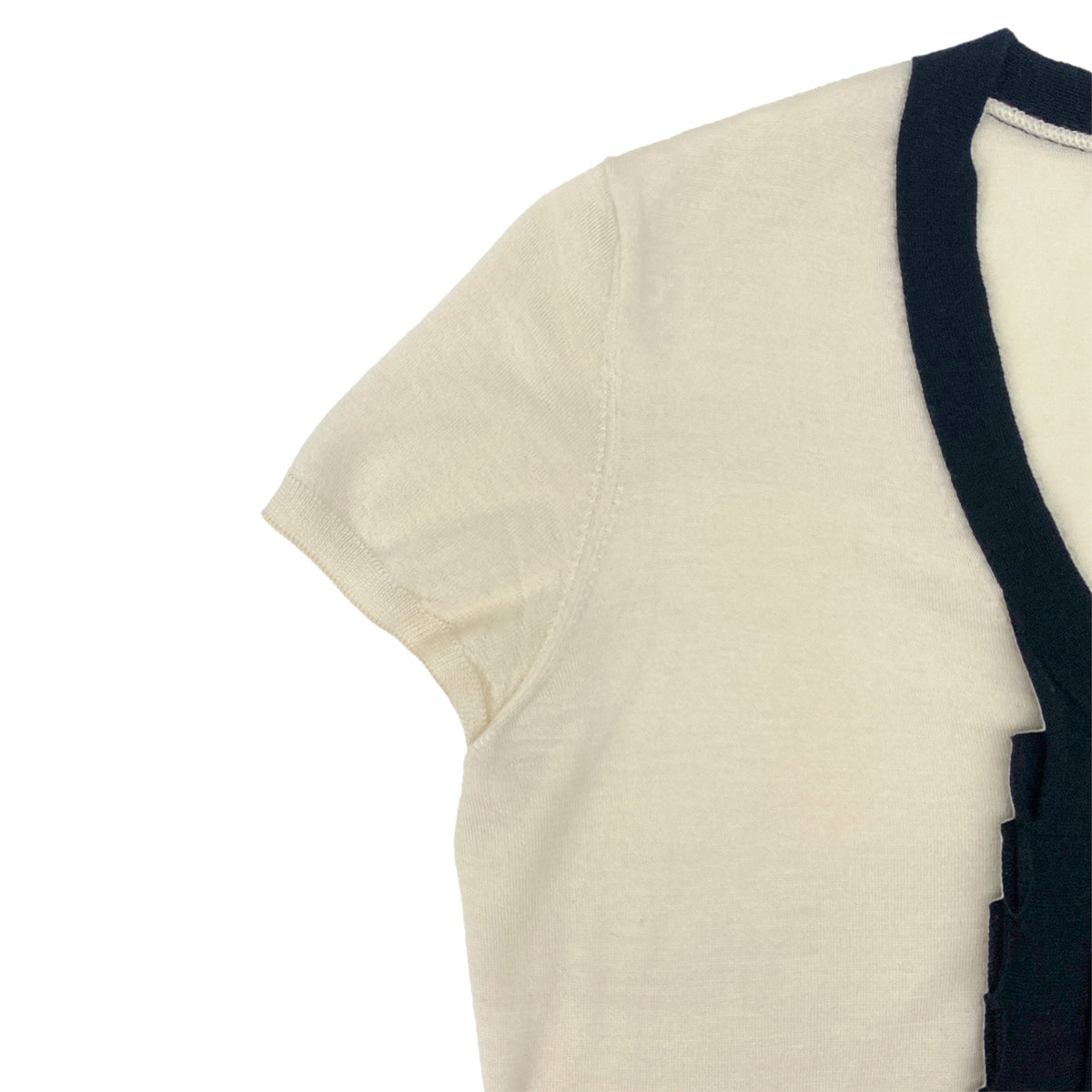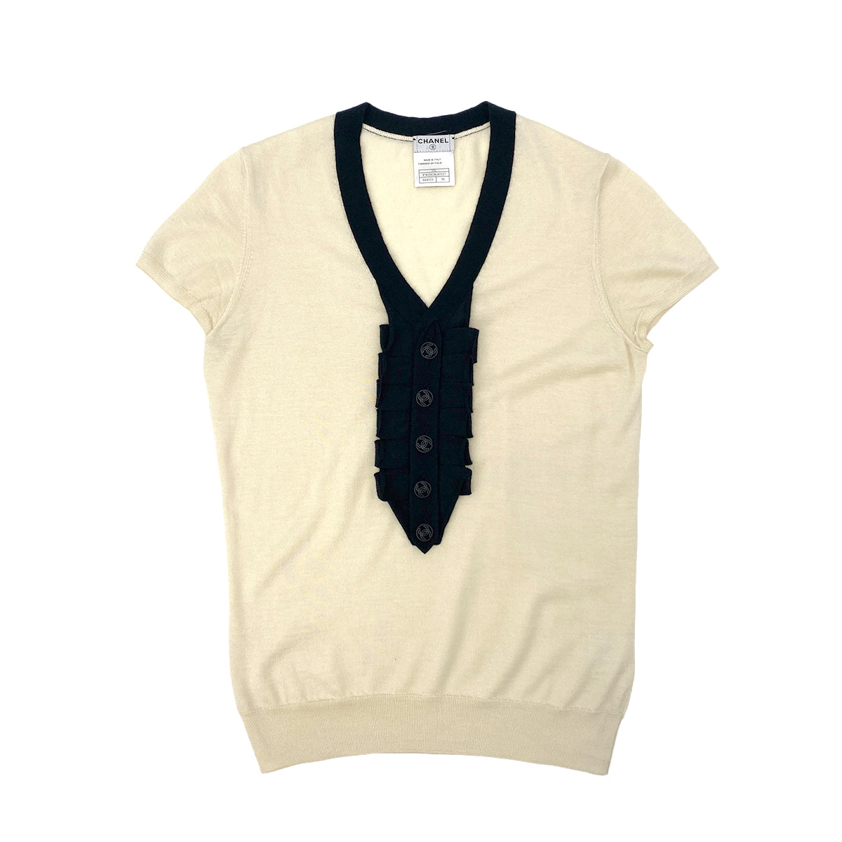 CHANEL COCO BUTTON KNIT TOPS SHORT SLEEVE BEIGE BLACK CASHMERE 38 07C RTW 90283996