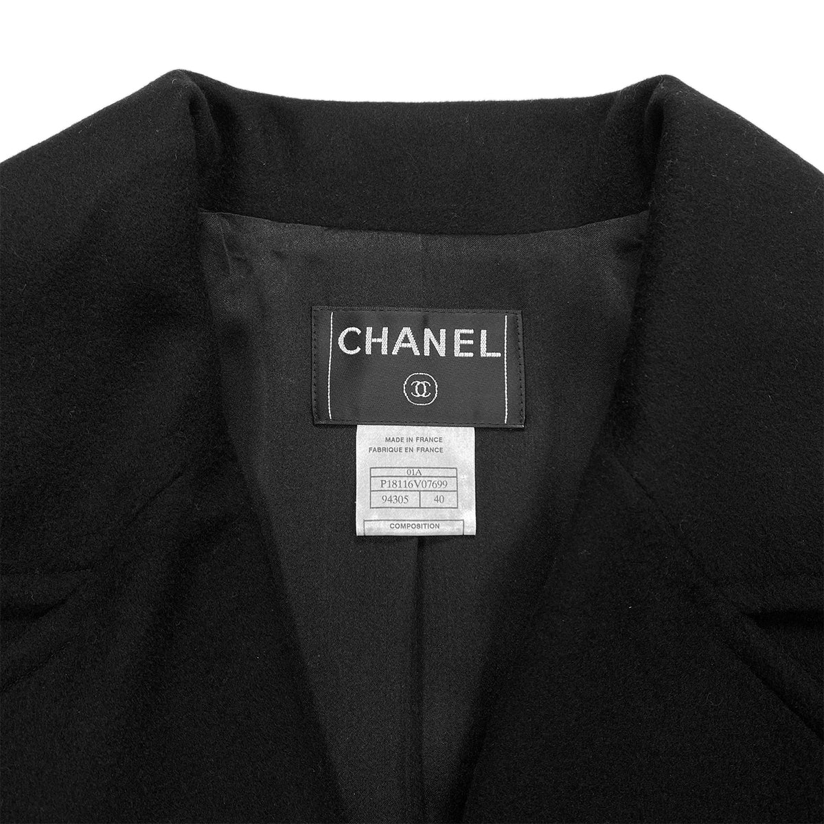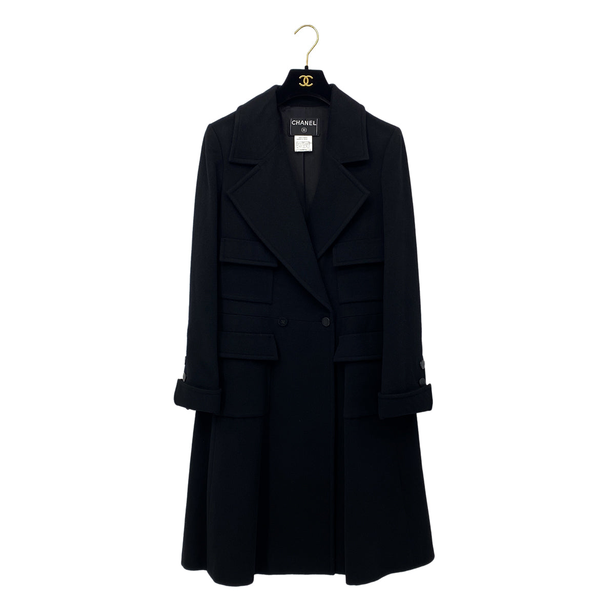 CHANEL COCO BUTTON LONG COAT BLACK CASHMERE 40 01A RTW 90283987