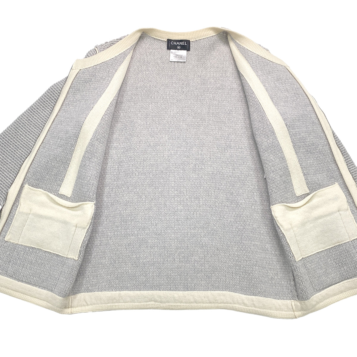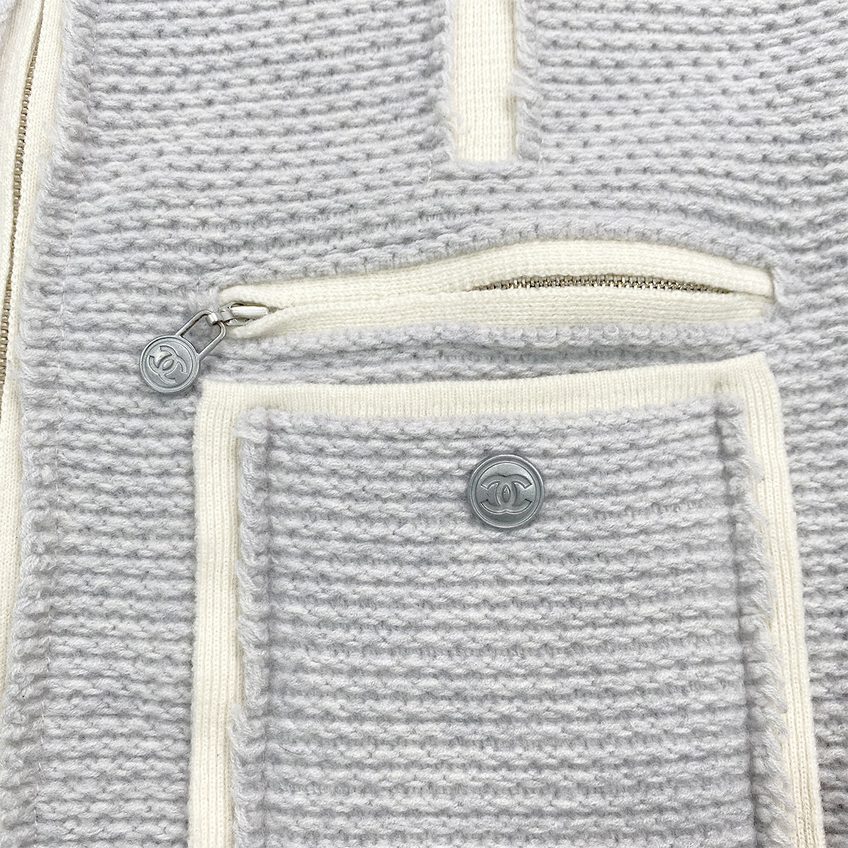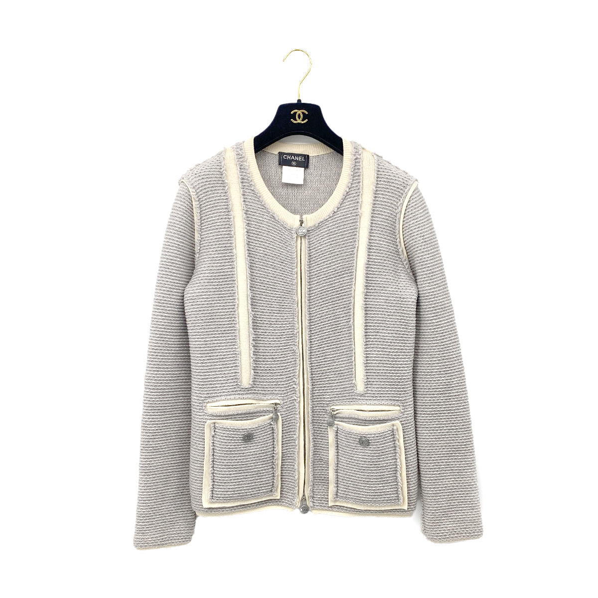 CHANEL COCO BUTTON ZIP JACKET GRAY WHITE WOOL 38 P39 RTW 90283632