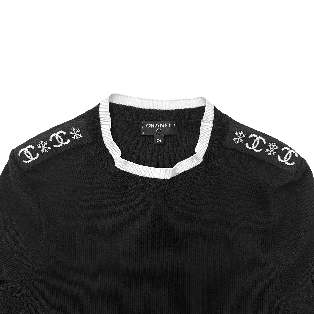 CHANEL COCO MARK LONG SLEEVE T-SHIRT BLACK CASHMERE 34 P62 RTW 90286205