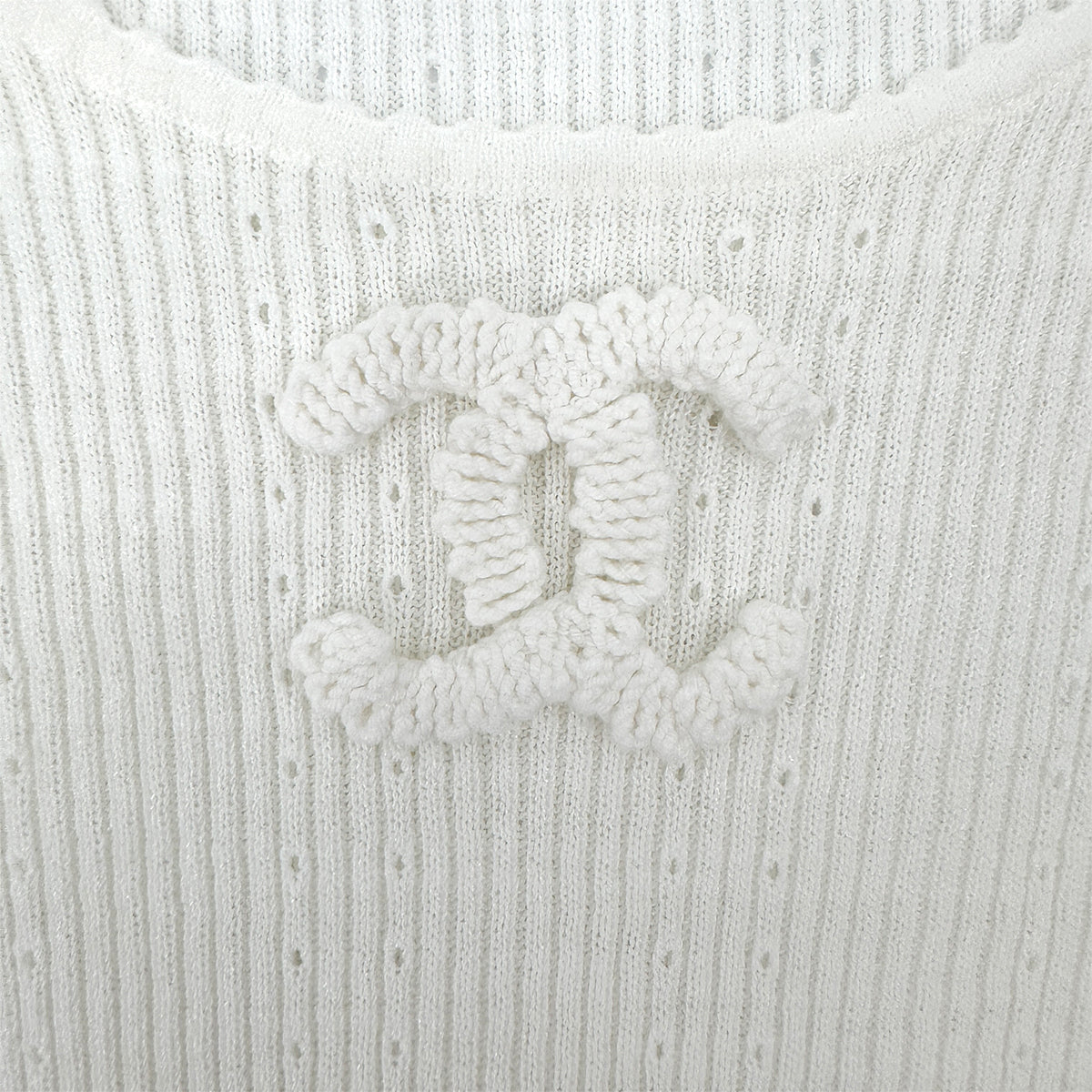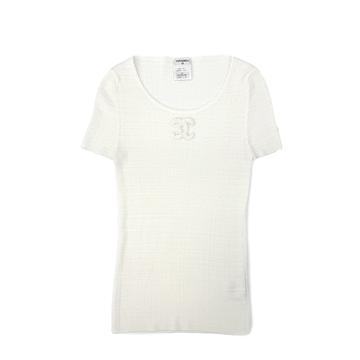 CHANEL COCO MARK TOPS WHITE COTTON 40 09P RTW 90284033