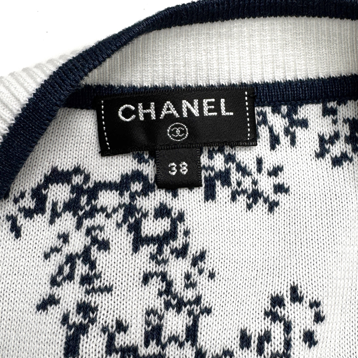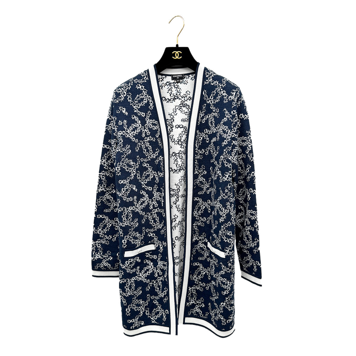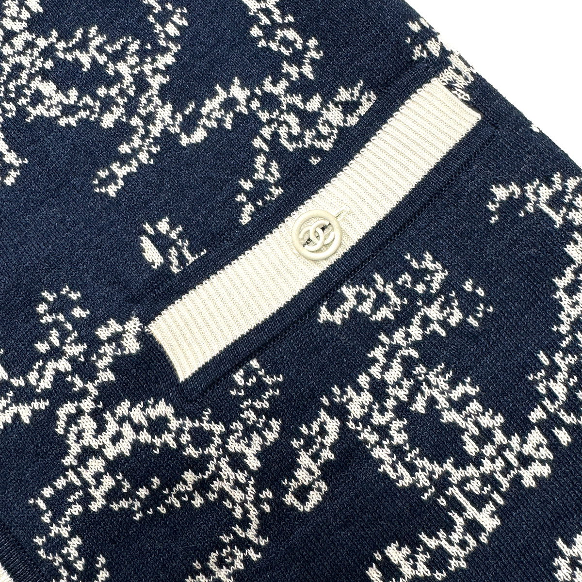 CHANEL COCOMARK PATTERN CARDIGAN NAVY WHITE 38 P60 RTW 90284445