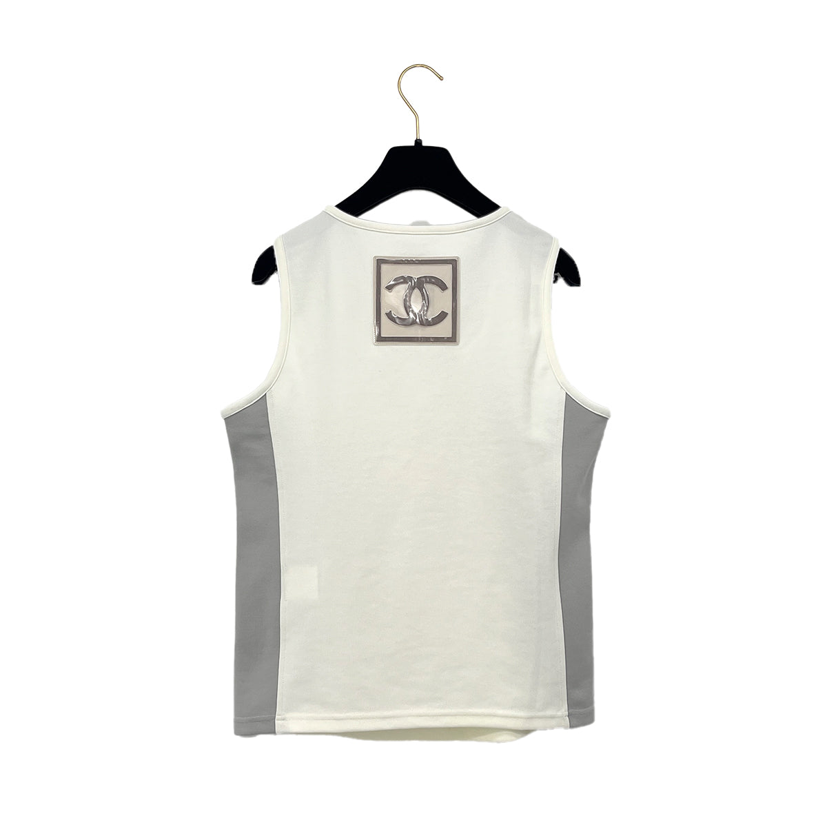 CHANEL COCOMARK SLEEVELESS TOPS WHITE GLAY POLYAMIDE 44 01P RTW 90287076