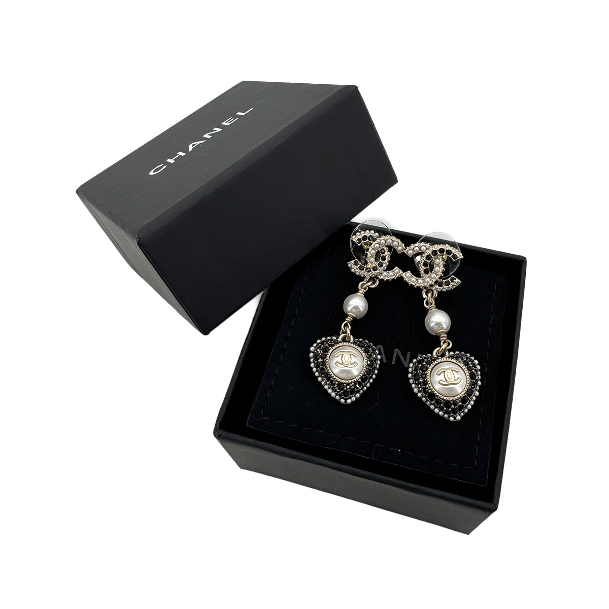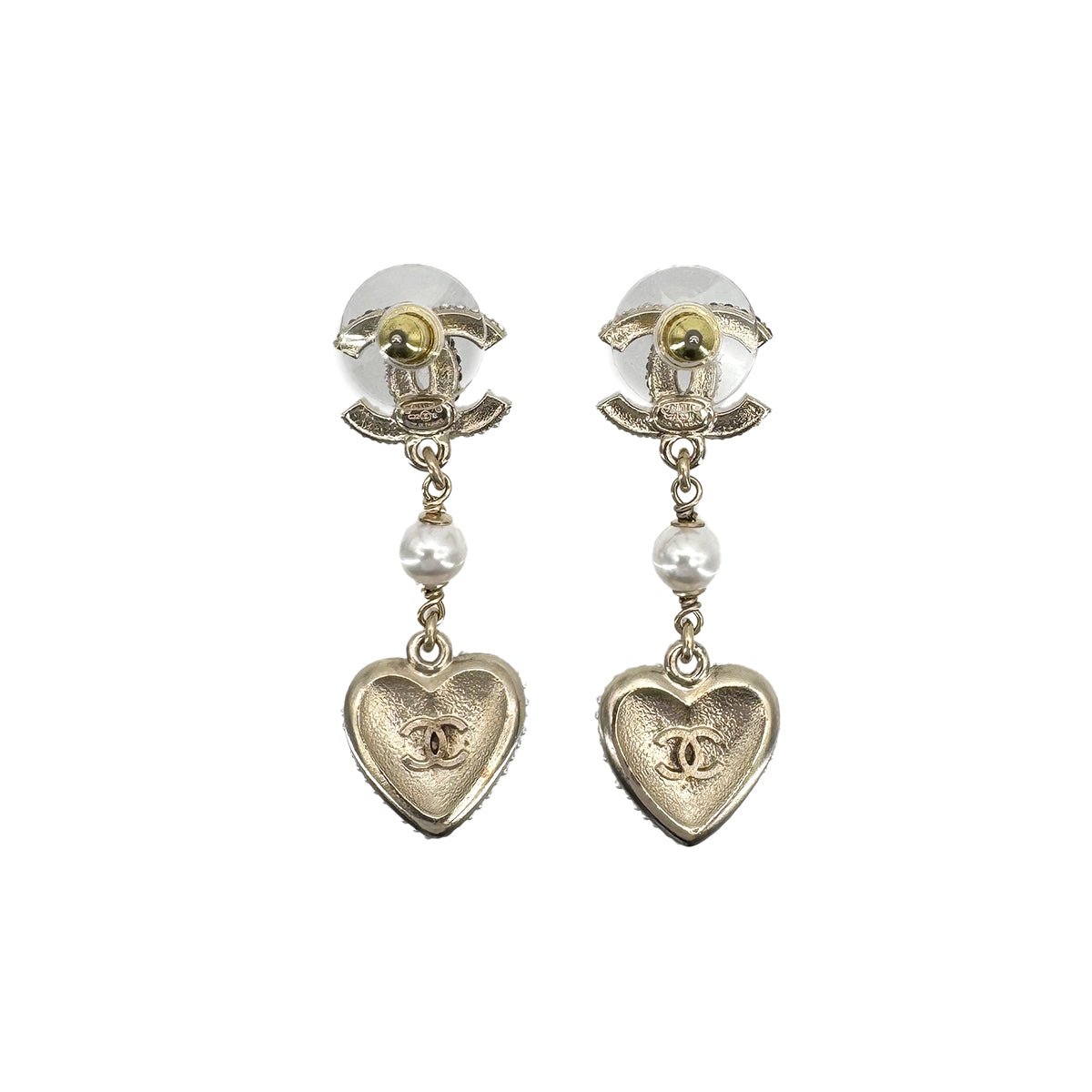 CHANEL EARRINGS COCOMARK HEART FAUX PEARL RHINESTONE ACCESSORY C22B 90273920